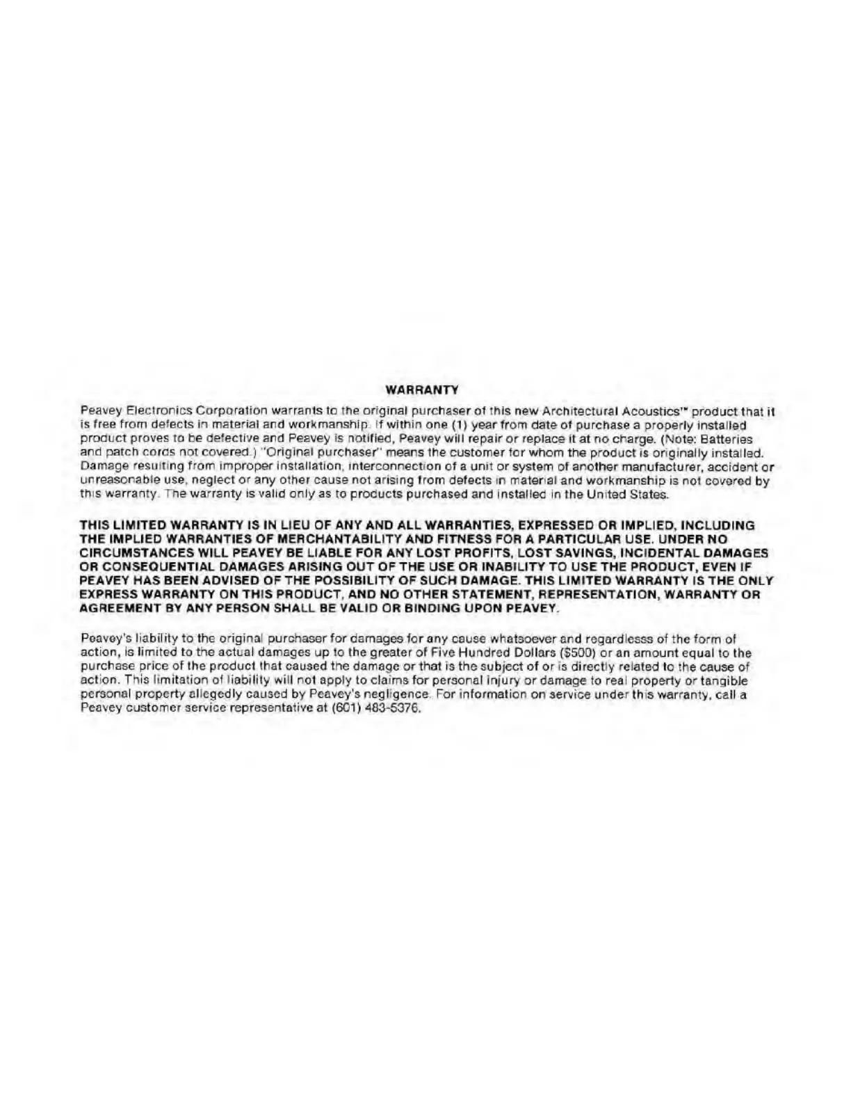 Peavey IPA 300T - Warranty