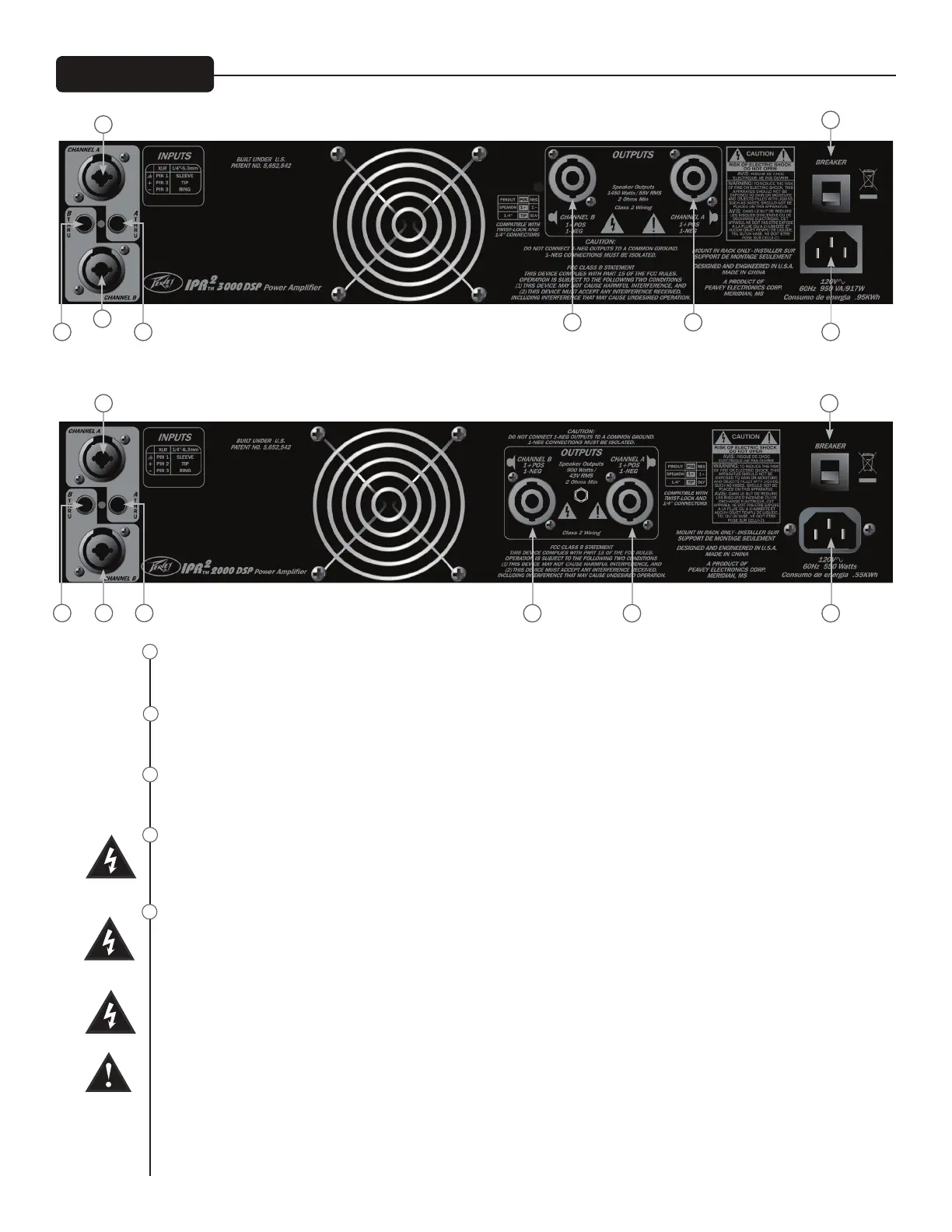 the cables and connections, the amplifier can be reset. If the circuit breaker trips a second time, contact the local Peavey authorized