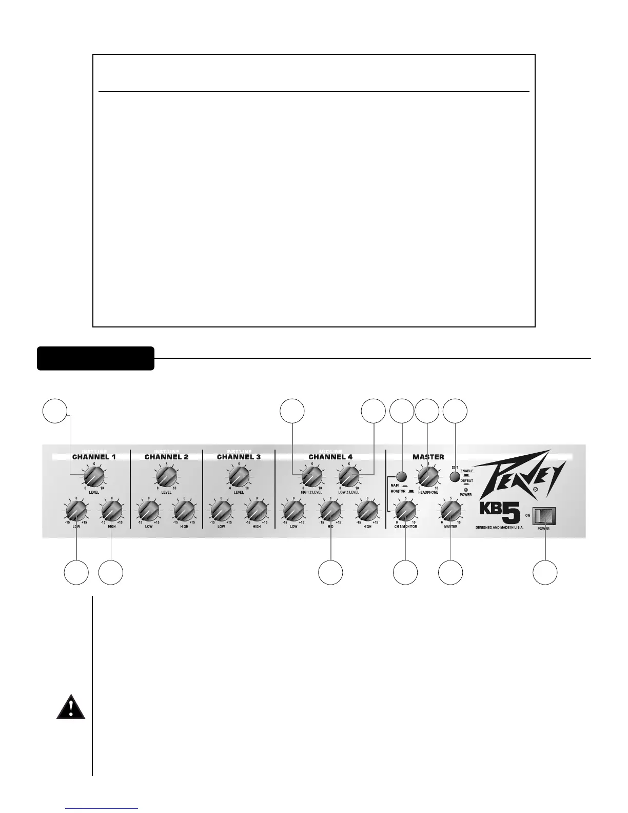 Controla el nivel de la salida de 1/4". (Los canales 1, 2 y 3 del KB5 y los canales 1, y 2 del KB4.)