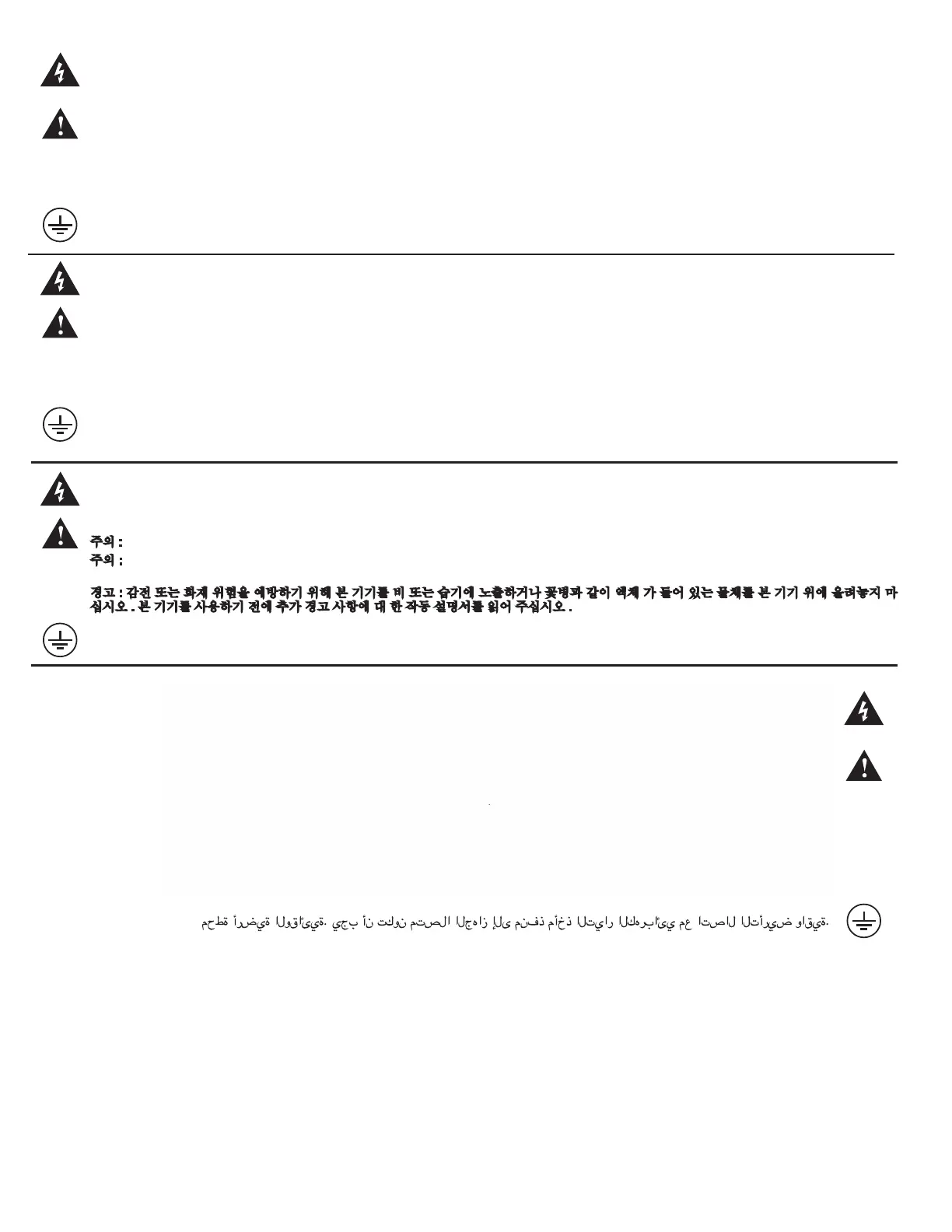 주의 : 감전 위험을 낮추기 위해 덮개를 제거하지 마십시오 . 장치 내부에는 사용자가 직접 수리할 수 있는 부품이 없습니다 . 자격을 갖춘 서비스 요