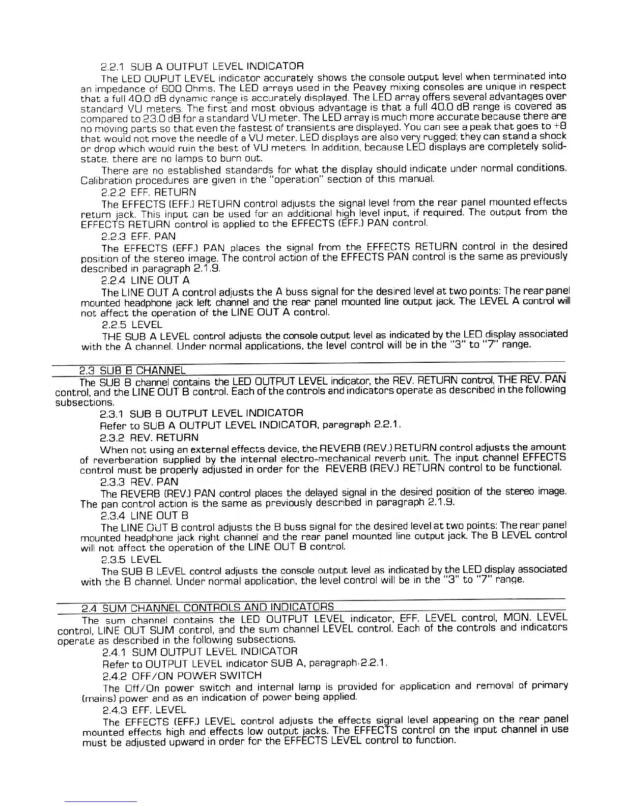 Peavey Mark MC-12 - 2.2 Sub a Channel Controls and Indicators; 2.3 Sub B Channel; 2.4 Sum Channel Controls and Indicators