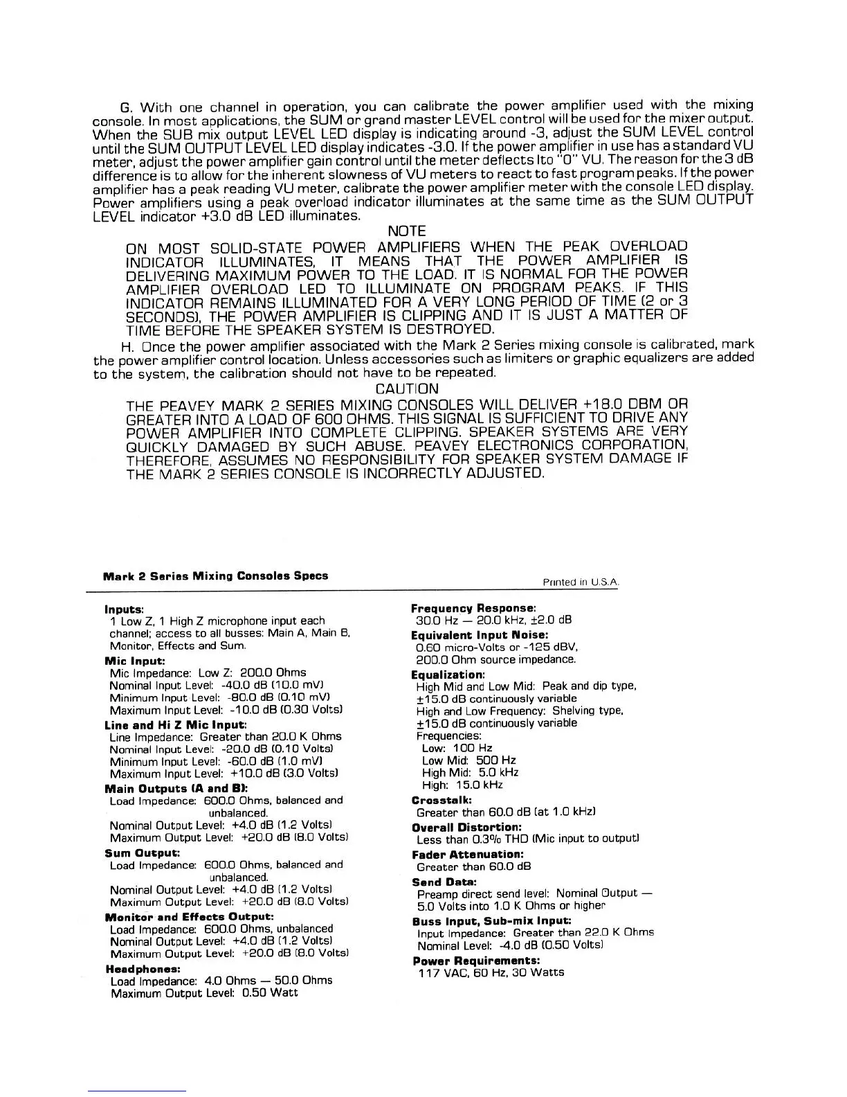 Peavey Mark MC-12 - Mark 2 Series Mixing Consoles Specs