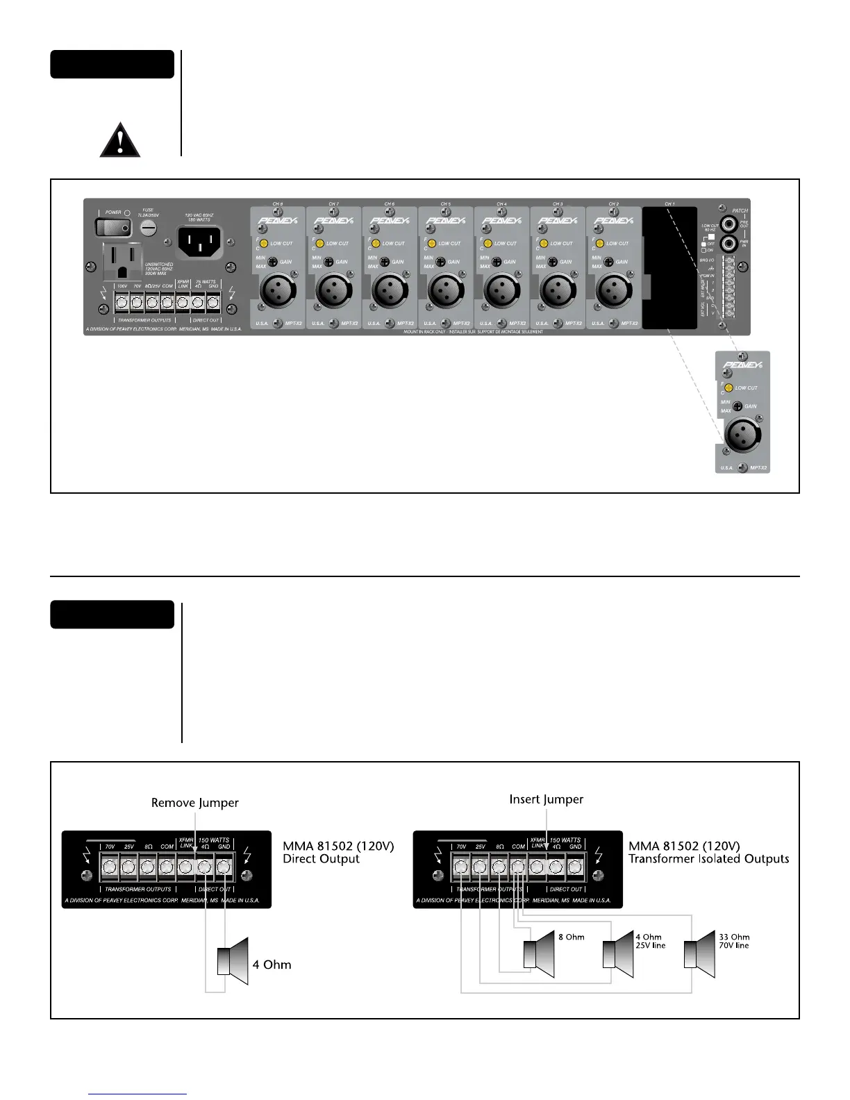 CAUTION: Plug-in Modules should not be inserted or removed while the mixer/amplifier is turned