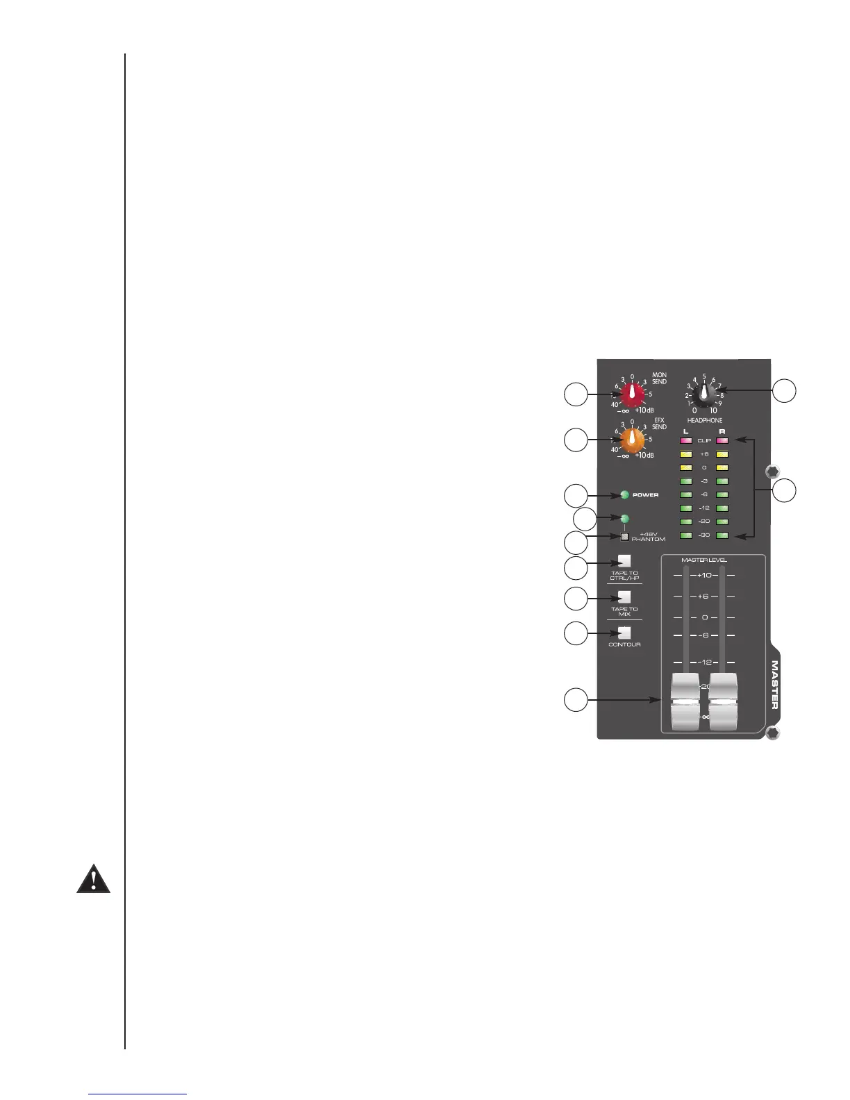 unité. Le niveau de ce signal est affecté par les faders des canaux, ainsi que les contrôles d’envoi d’effet et de