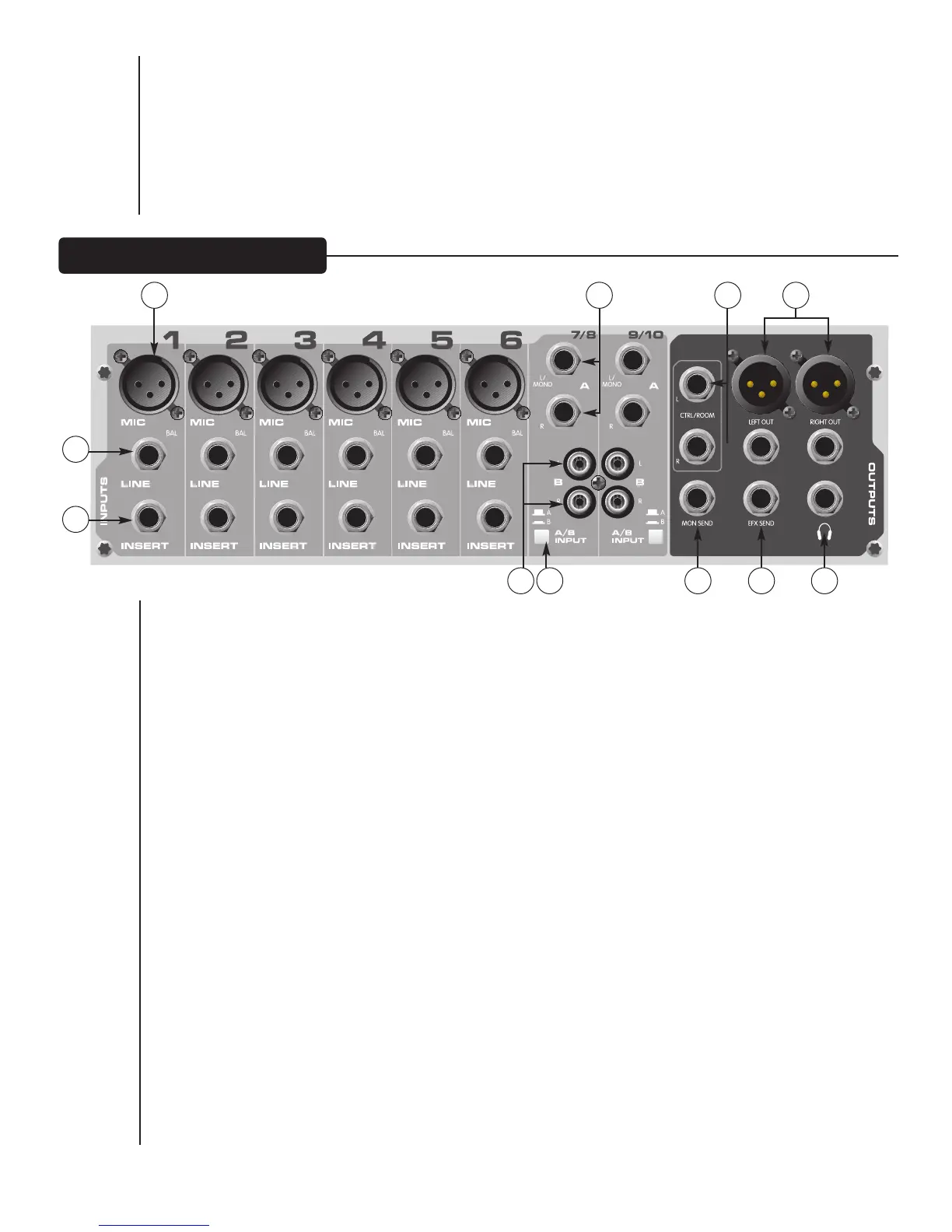 entrées XLR(Mic) et Jack(Line) du même canal ne devraient pas être utilisées en même temps.