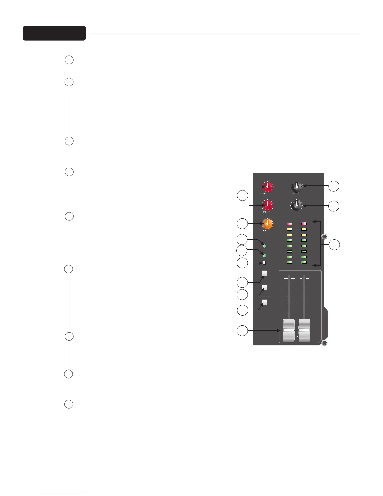 and PV™20 effects processors. The signal level to the processor is affected by channel Fader, the Effects