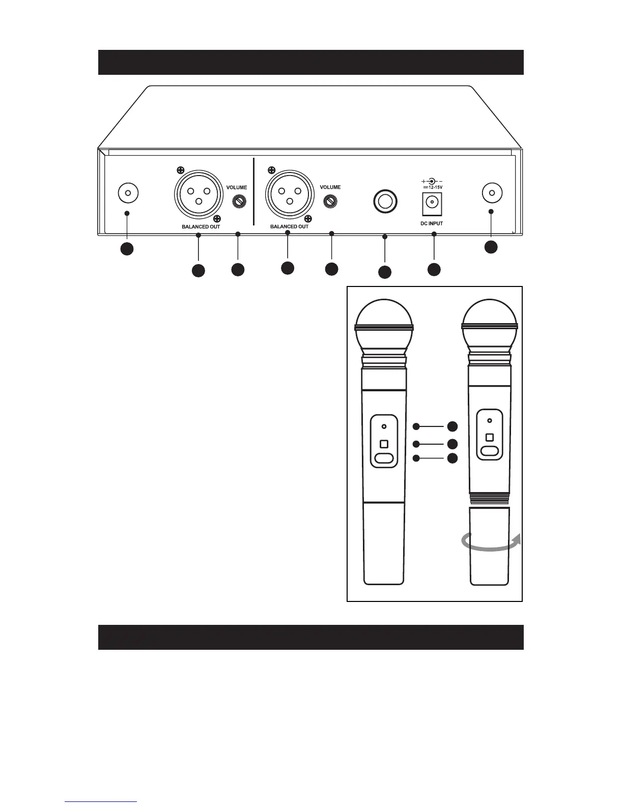 (16) Interrupteur marche-arrêt/sourdine : Maintenir enfoncé pour
