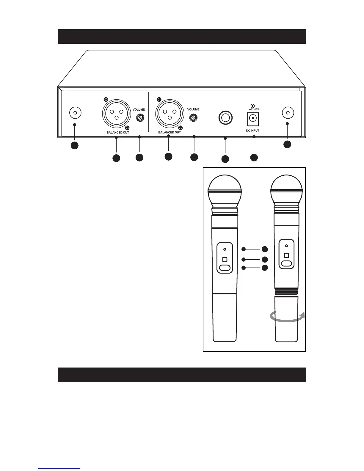 (16) On-off / mute switch: Press and hold to turn on or off. Press and