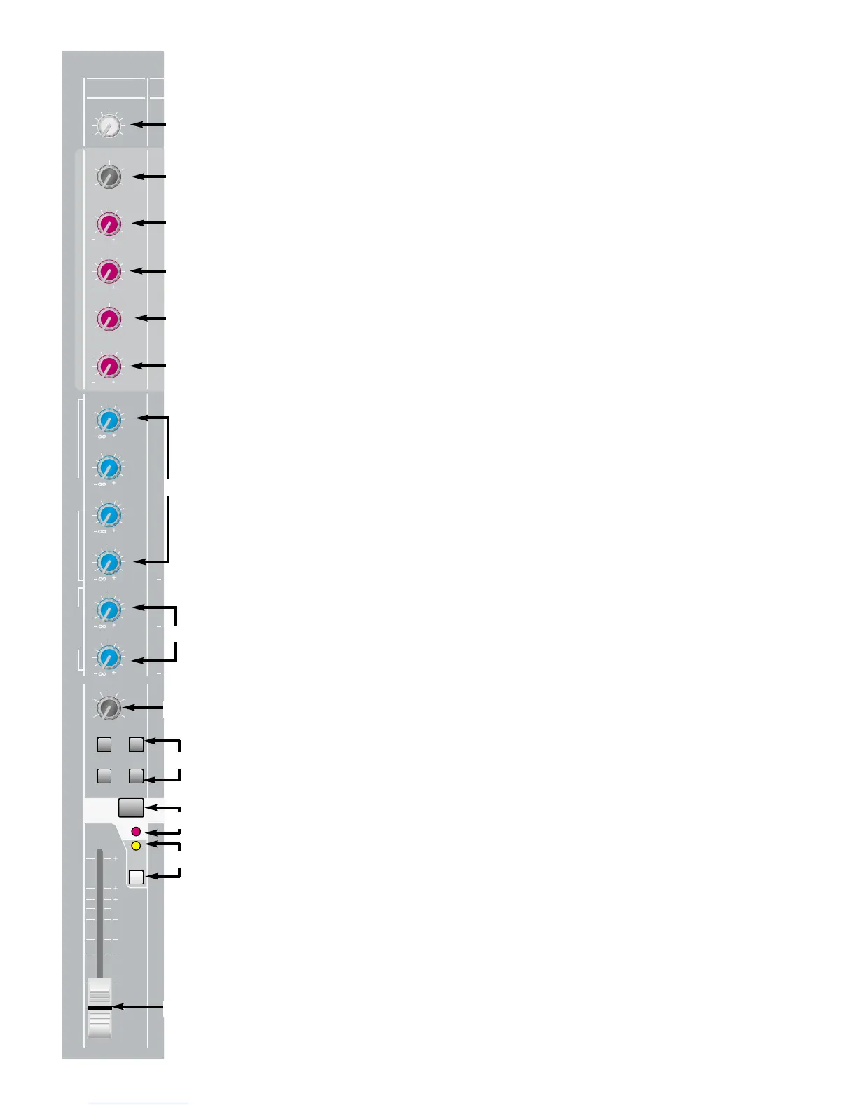 is sent to the auxiliary mix. Gain is variable from minus infinity (– ∞)
