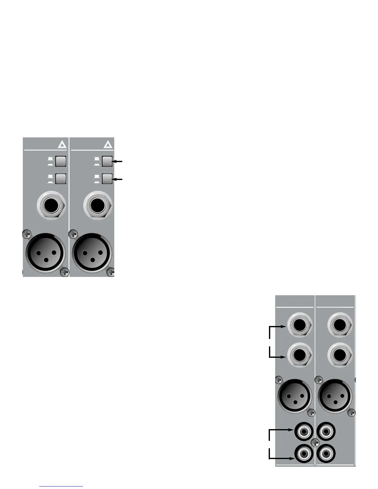 These TS jacks are unbalanced line-level inputs for stereo (L/R)
