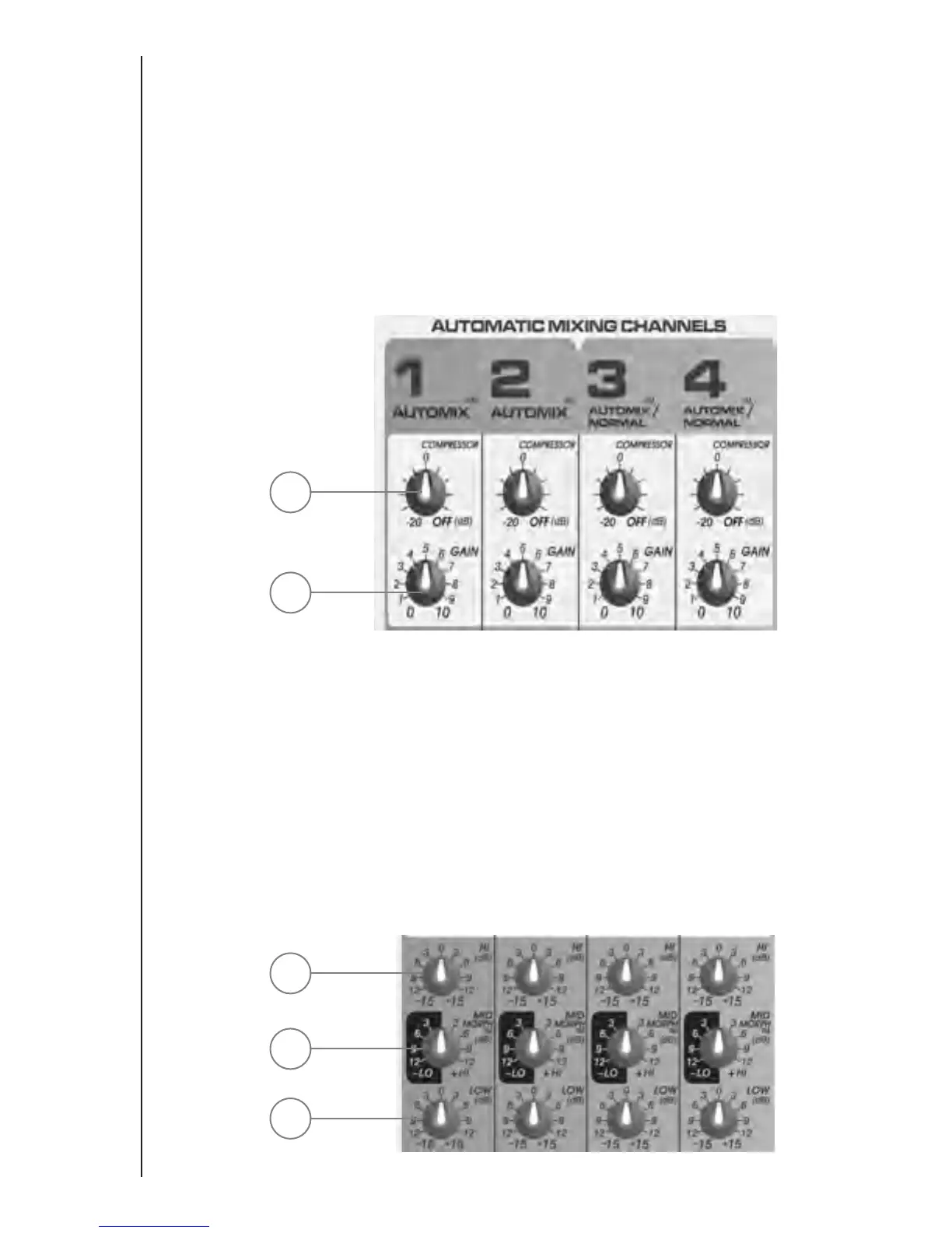 1. COMPRESSOR THRESHOLD: The first four channels have auto-mixing and compressor capabilities when