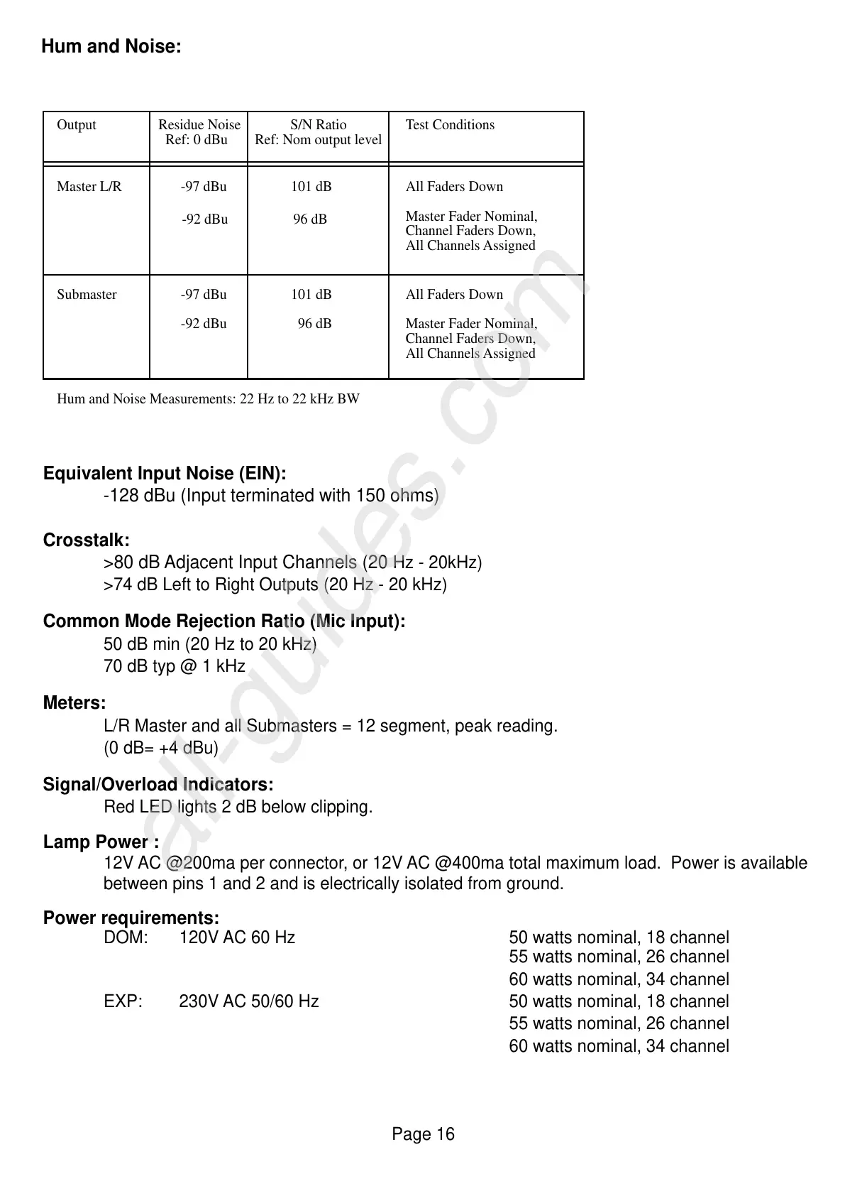 DOM: 120V AC 60 Hz 50 watts nominal, 18 channel