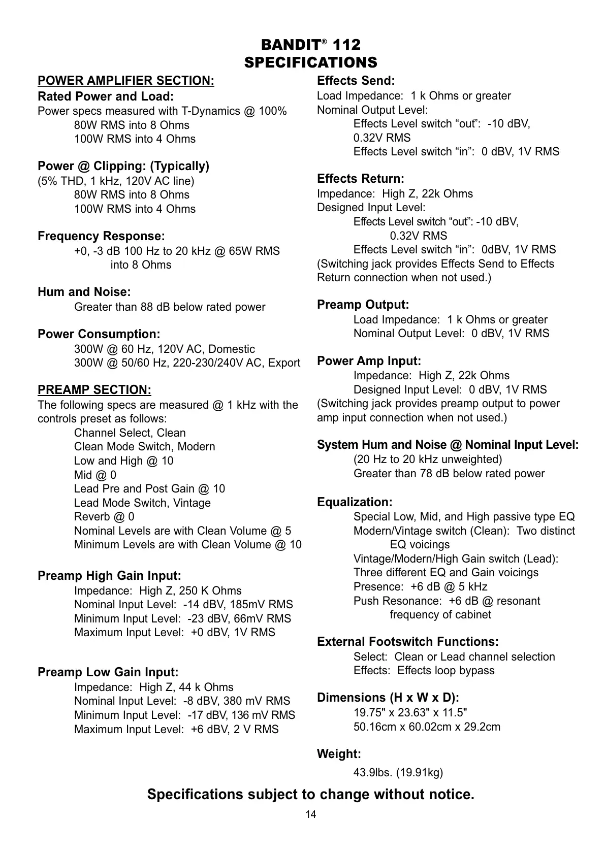 Effects Level switch “in”: 0 dBV, 1V RMS