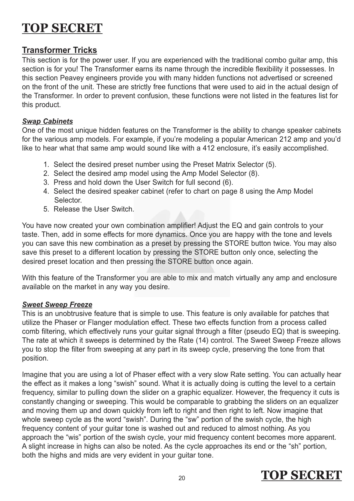 this section Peavey engineers provide you with many hidden functions not advertised or screened