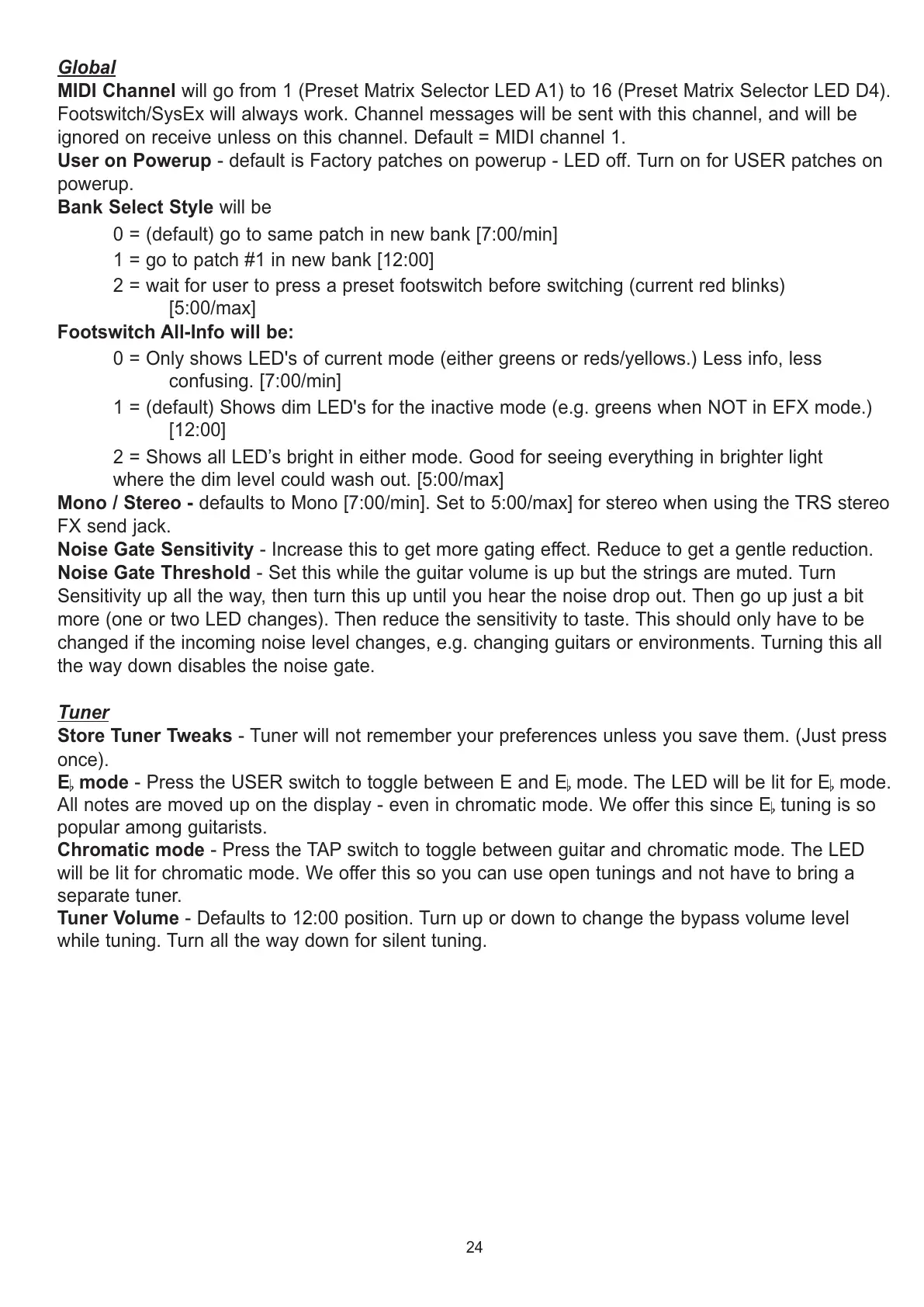changed if the incoming noise level changes, e.g. changing guitars or environments. Turning this all