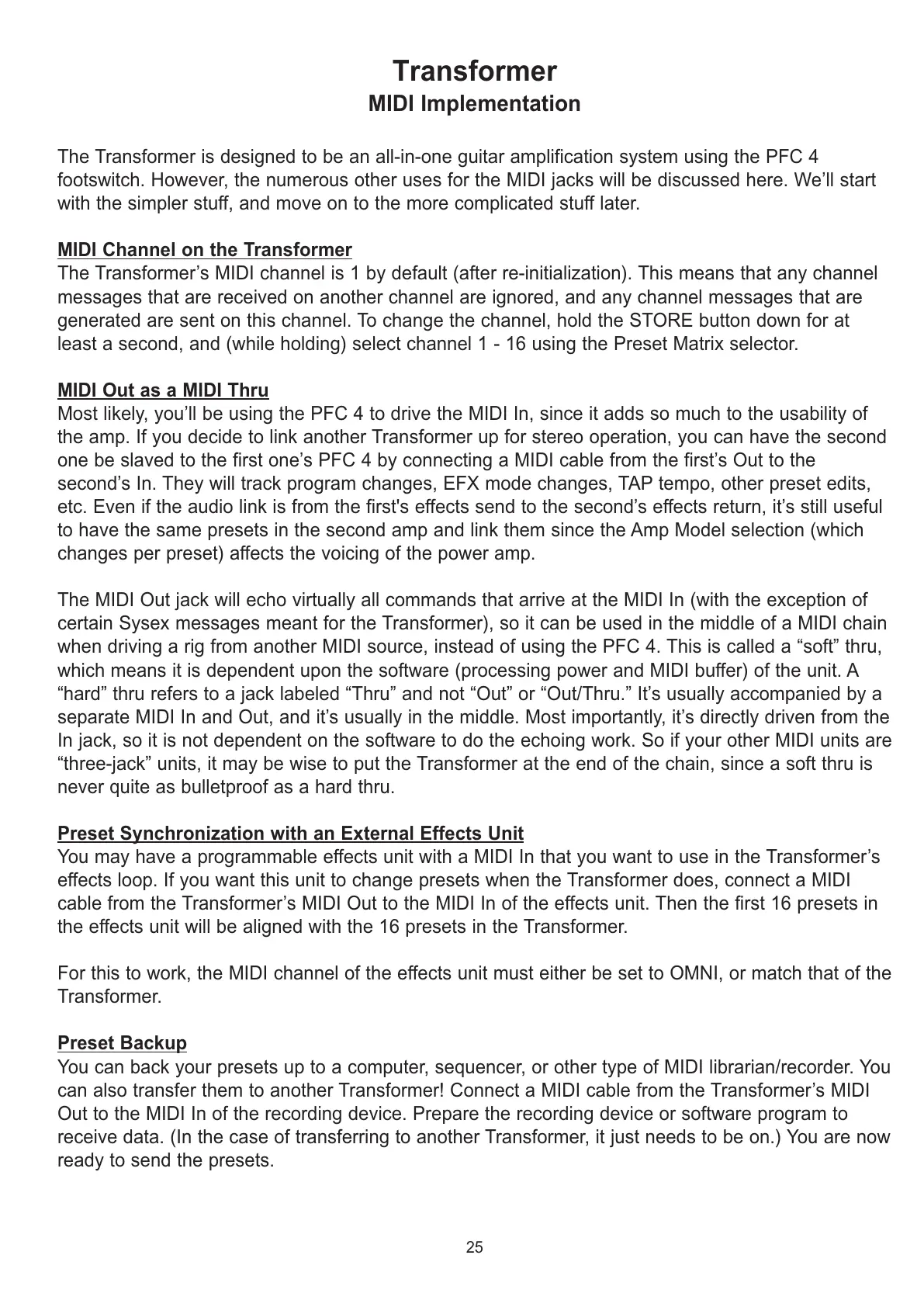 effects loop. If you want this unit to change presets when the Transformer does, connect a MIDI