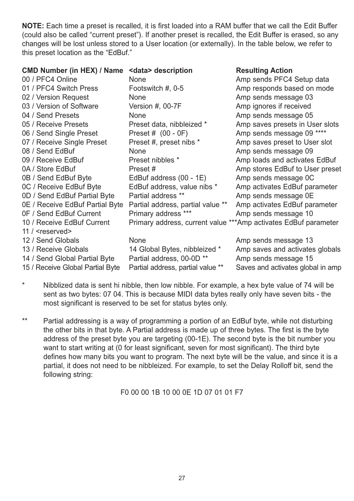 0C / Receive EdBuf Byte EdBuf address, value nibs * Amp activates EdBuf parameter