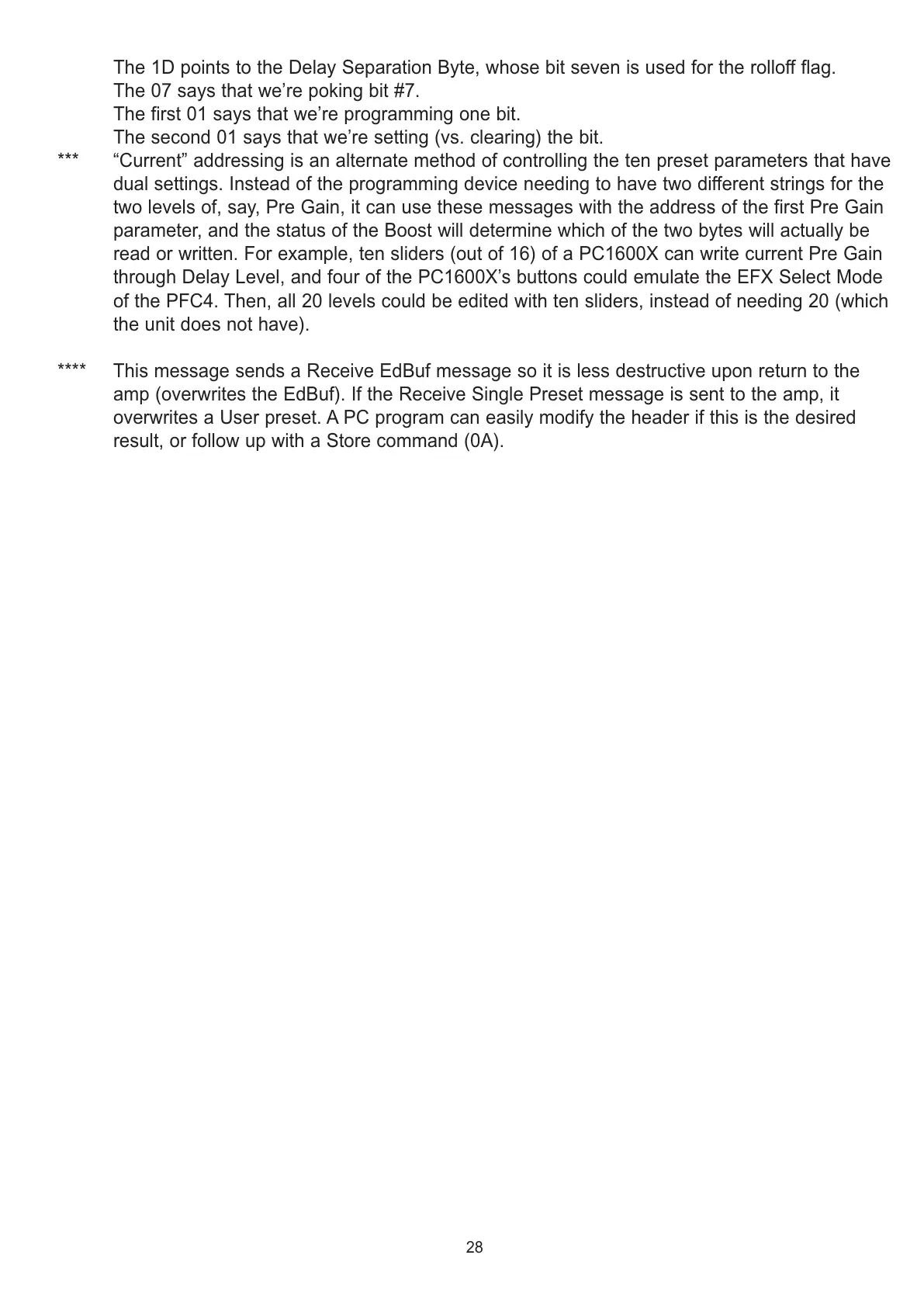 *** “Current” addressing is an alternate method of controlling the ten preset parameters that have