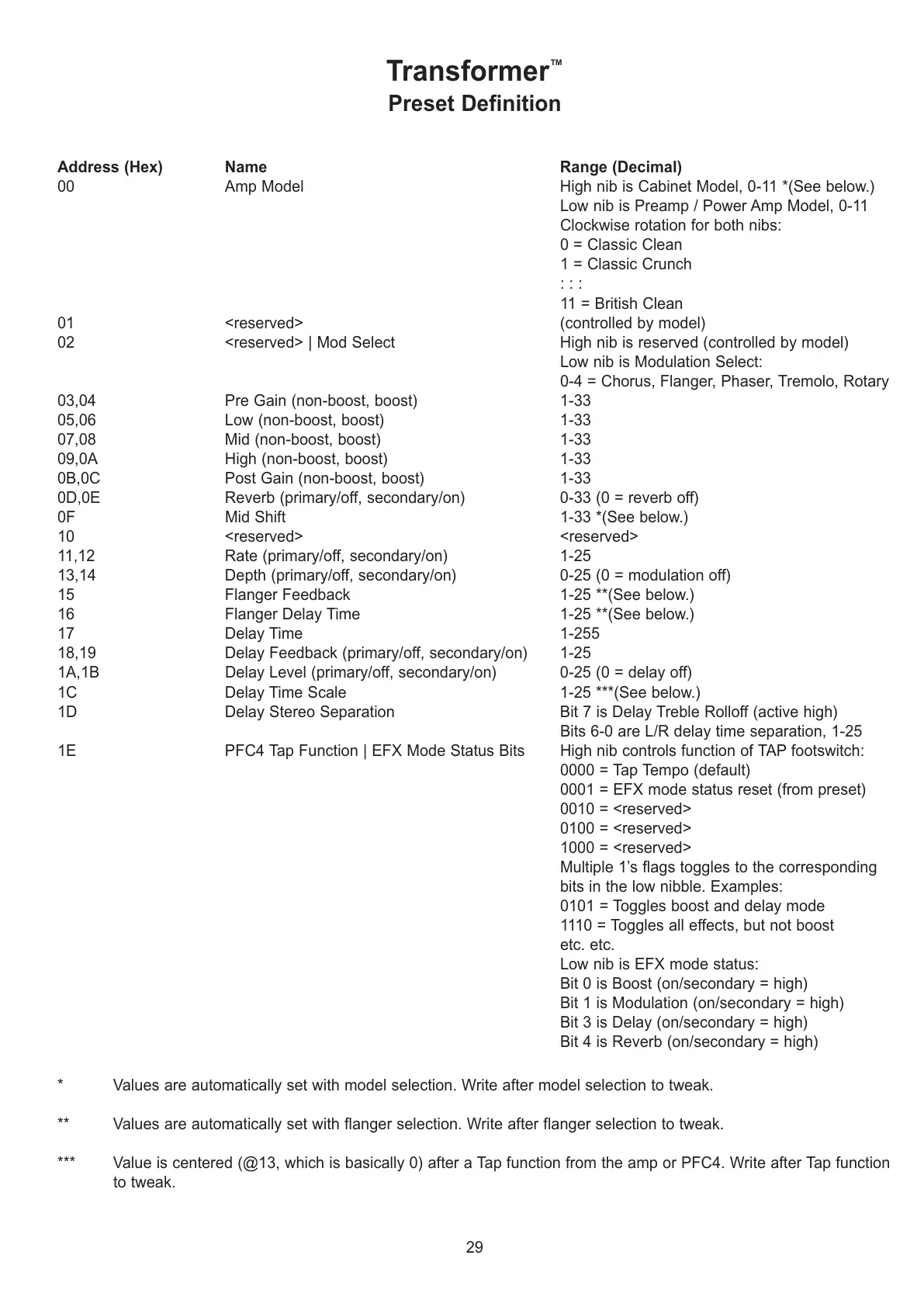 1E PFC4 Tap Function | EFX Mode Status Bits High nib controls function of TAP footswitch: