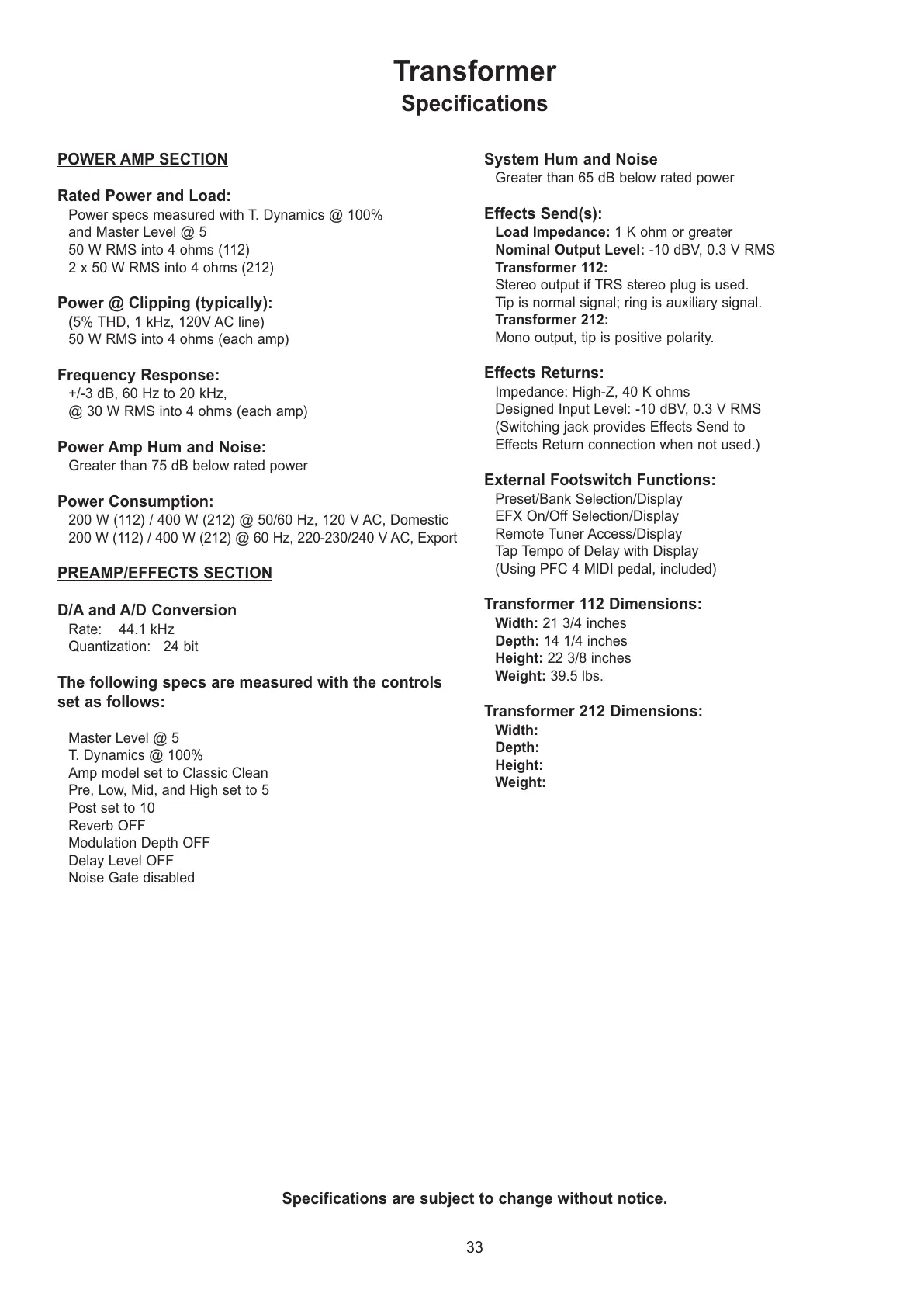 Nominal Output Level: -10 dBV, 0.3 V RMS