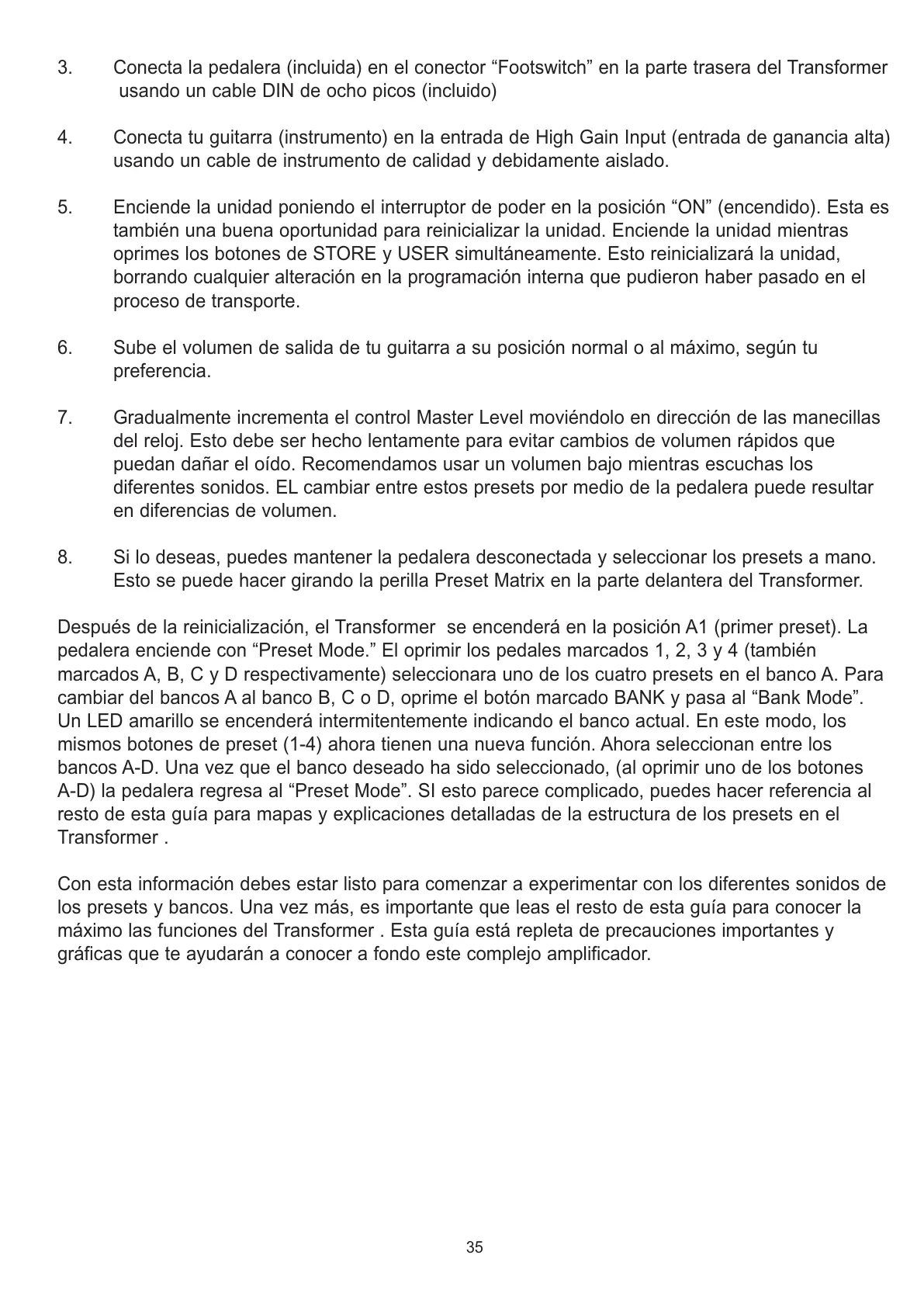 A-D) la pedalera regresa al “Preset Mode”. SI esto parece complicado, puedes hacer referencia al