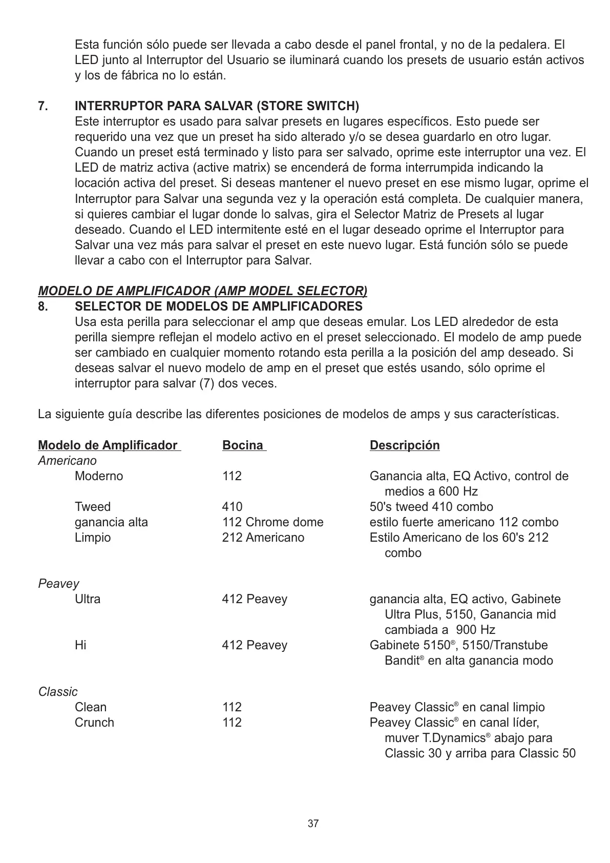 ser cambiado en cualquier momento rotando esta perilla a la posición del amp deseado. Si