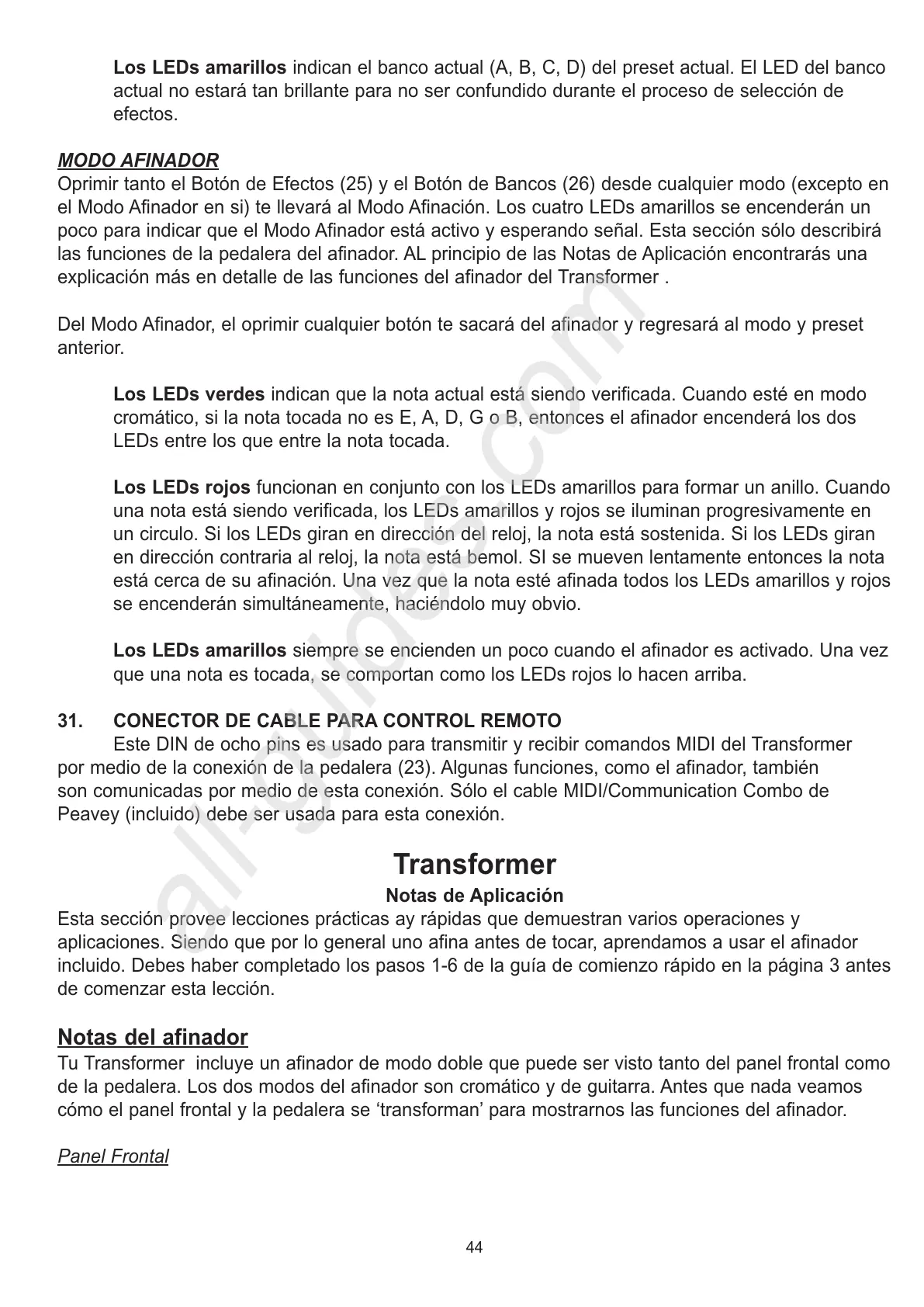 las funciones de la pedalera del afinador. AL principio de las Notas de Aplicación encontrarás una