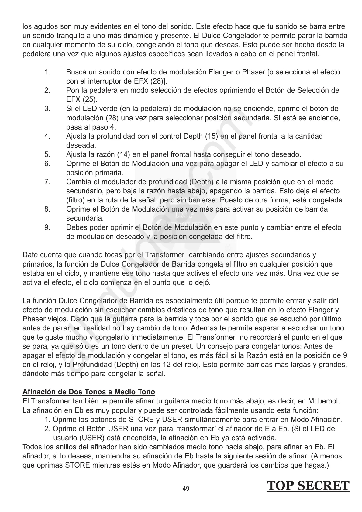 El Transformer también te permite afinar tu guitarra medio tono más abajo, es decir, en Mi bemol.