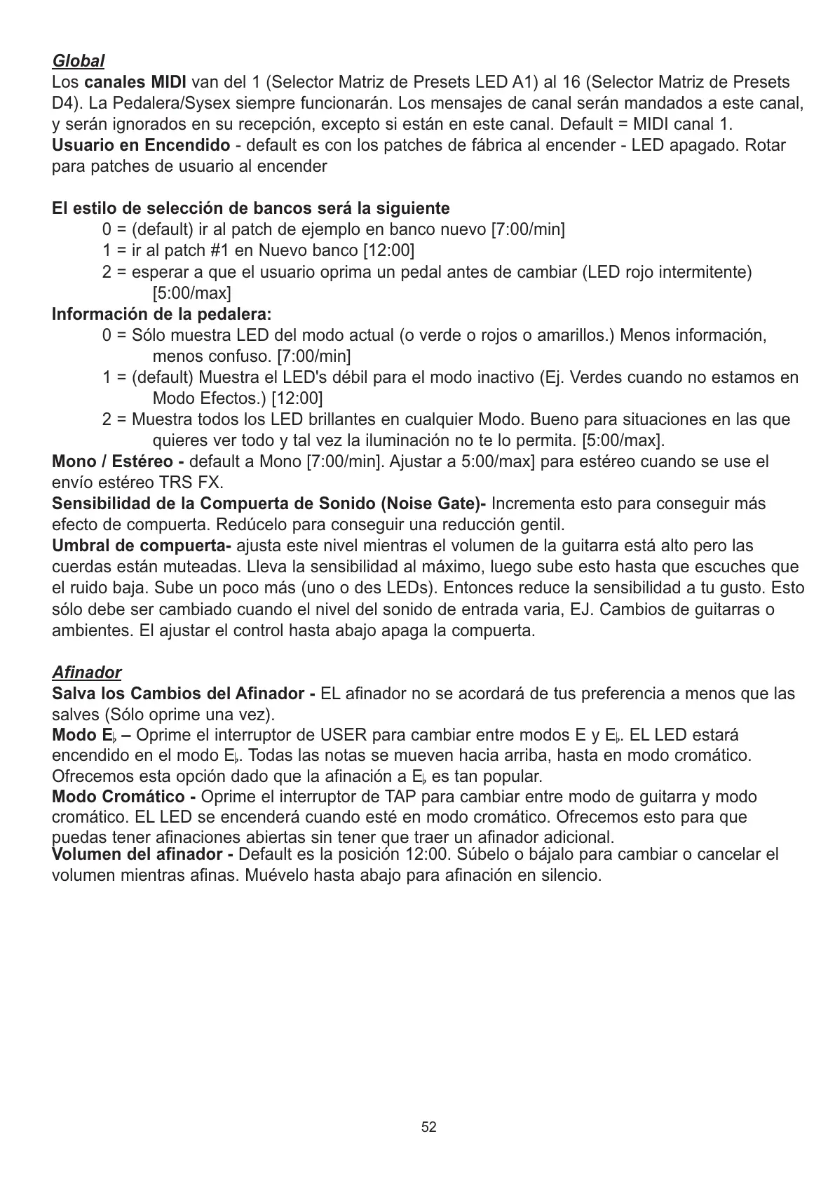 D4). La Pedalera/Sysex siempre funcionarán. Los mensajes de canal serán mandados a este canal,
