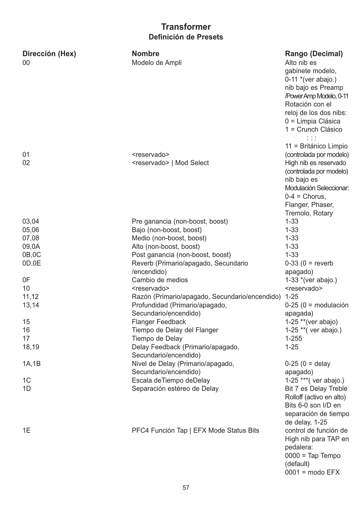 0D,0E Reverb (Primario/apagado, Secundario 0-33 (0 = reverb