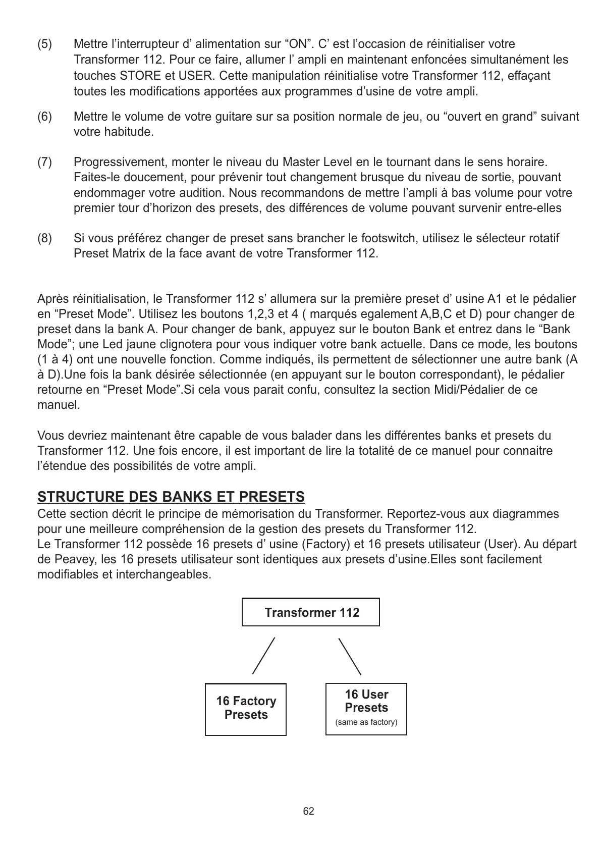 de Peavey, les 16 presets utilisateur sont identiques aux presets d’usine.Elles sont facilement