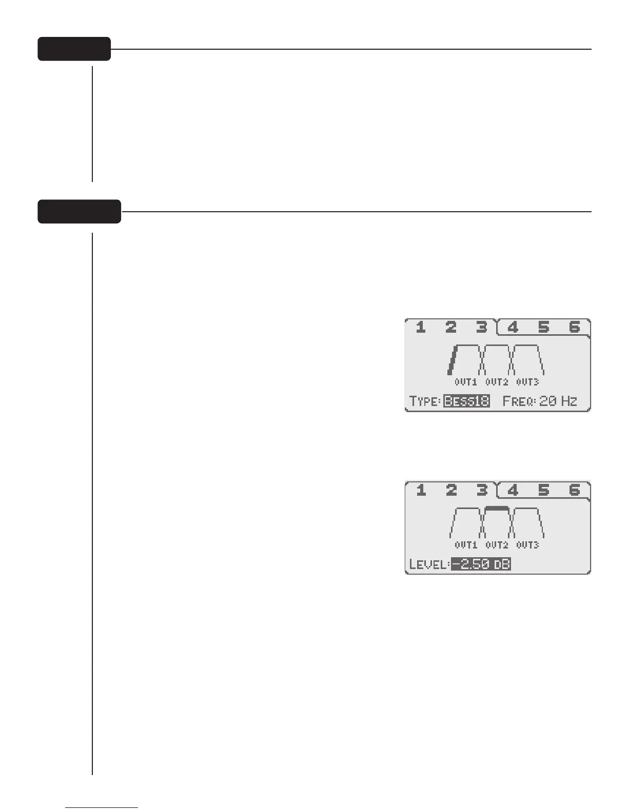 Each bandpass filter associated with the crossover is represented graphically on the screen. The two slopes