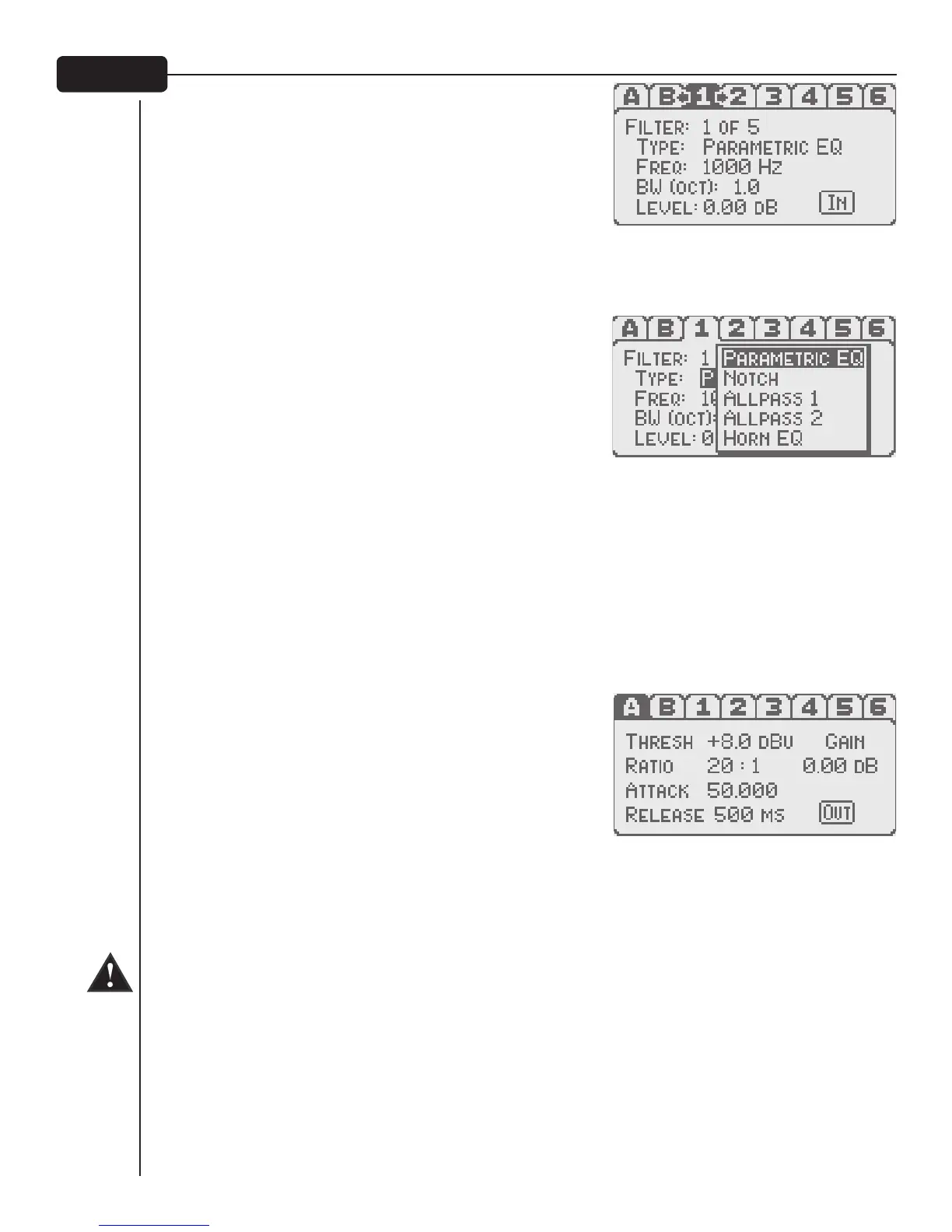 Choices are: Parametric, Notch, Allpass1, Allpass2, Horn EQ, LPF-6, LPF-12, HPF-6, HPF-12, Low Shelf, High Shelf