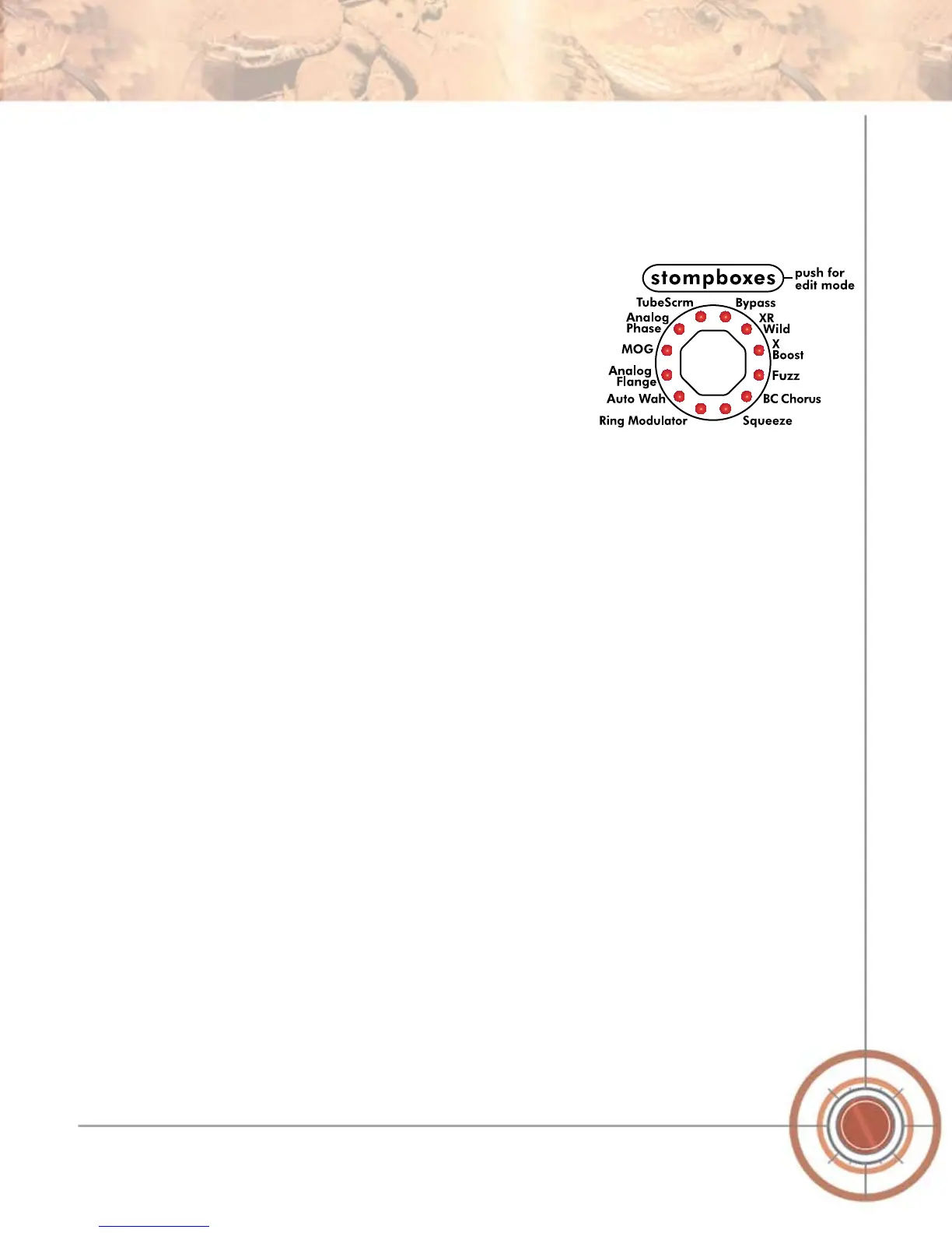 your tone with a crunchy overdrive that boosts certain frequencies and warms the tone. Parameter