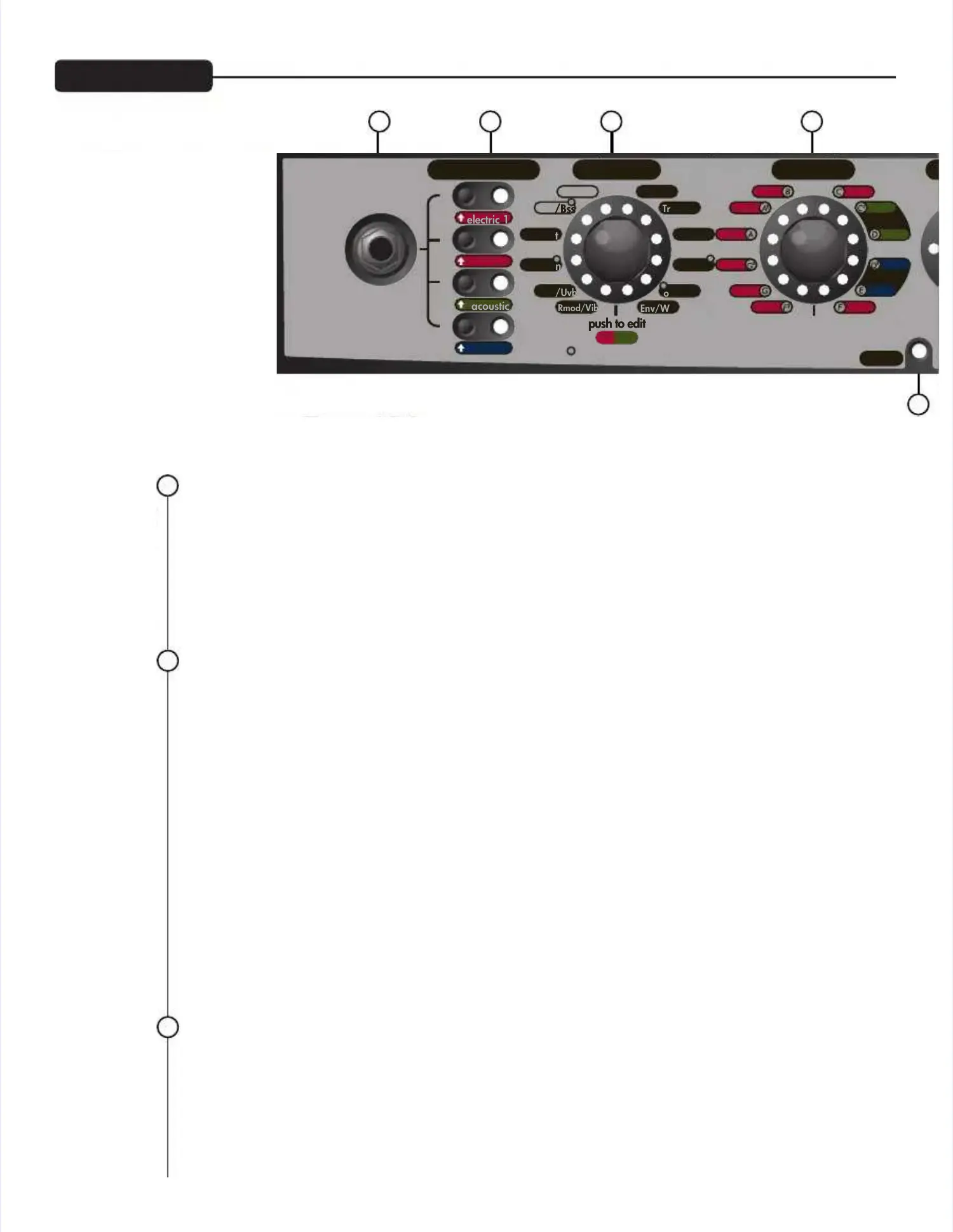 instrument types. instrument types. Once you plug into the amp, you select the iOnce you plug into the amp, you select the instrument type to the right (item 1). The ampnstrument type to the right (item 1). The amp