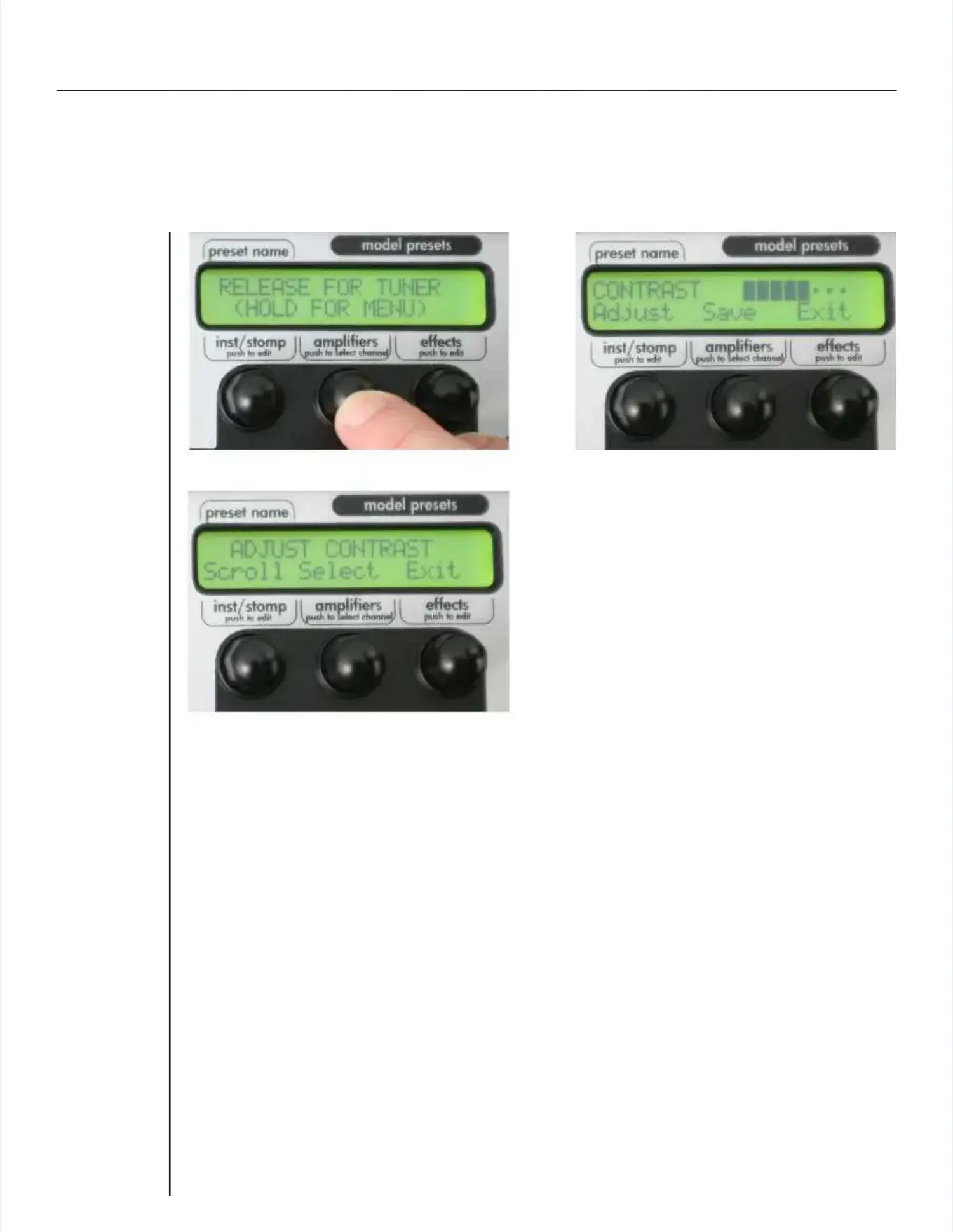 the contrast. the contrast. Then, press the amplifiers encoder to save your cThen, press the amplifiers encoder to save your changes or the effects encoder to exithanges or the effects encoder to exit