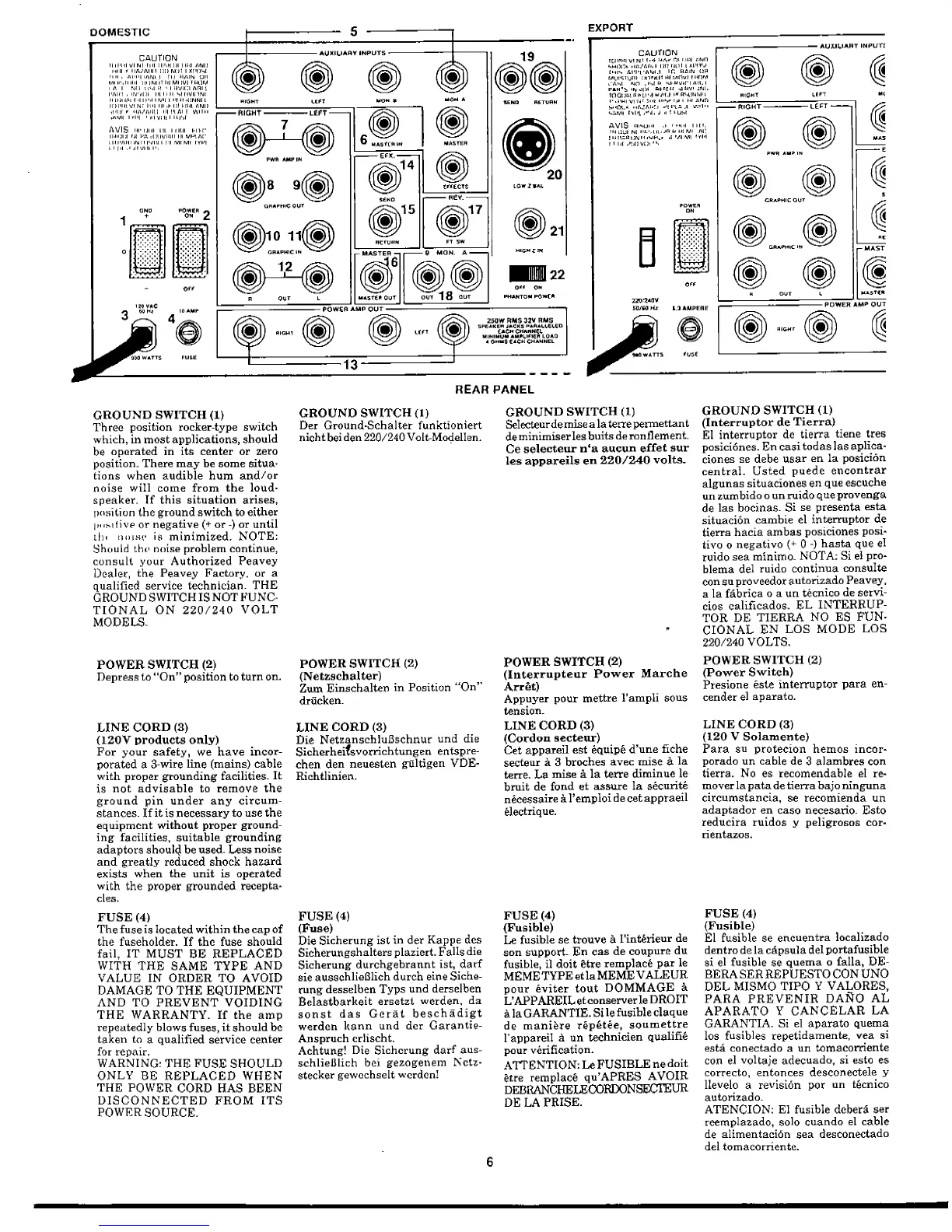 Peavey XR-1200C - Safety, Power, and Rear Panel Basics; Ground Switch and Power Switch; Line Cord and Fuse Protection