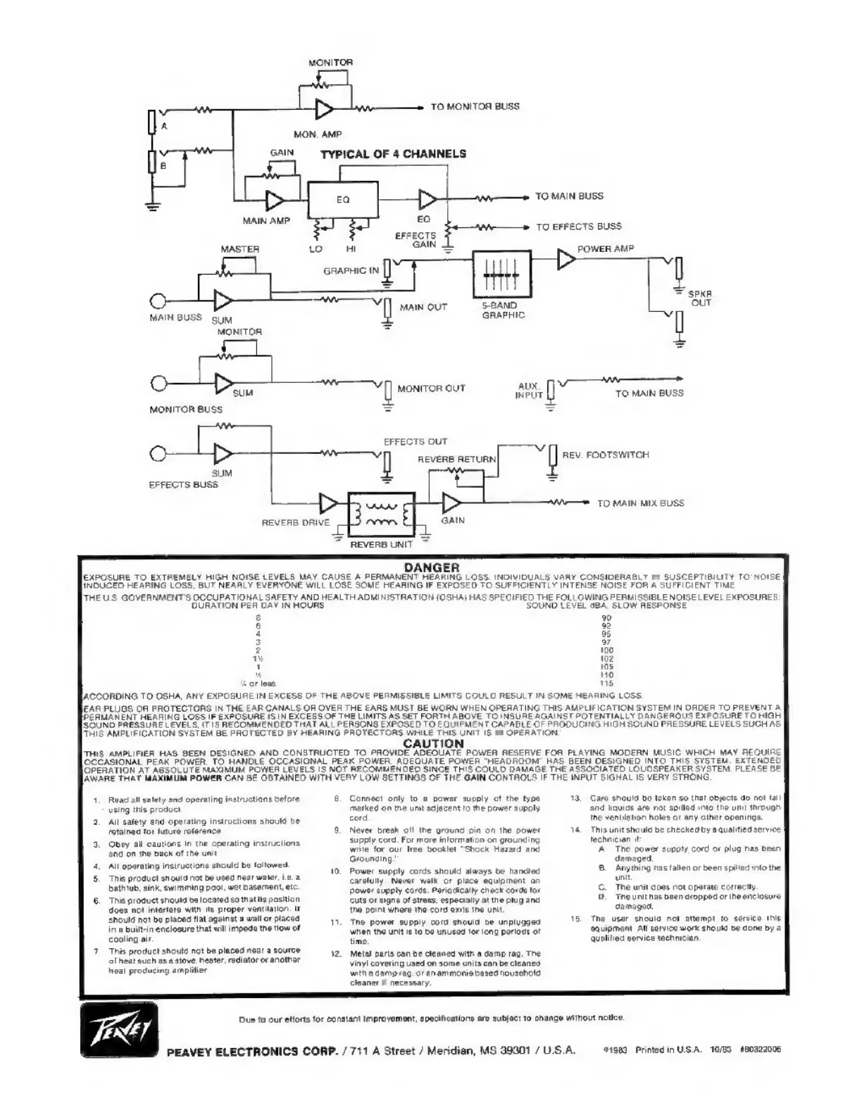 Peavey XR 400 - Safety and Operating Instructions; General Safety Precautions; Operating Instructions; Hearing Protection Warning