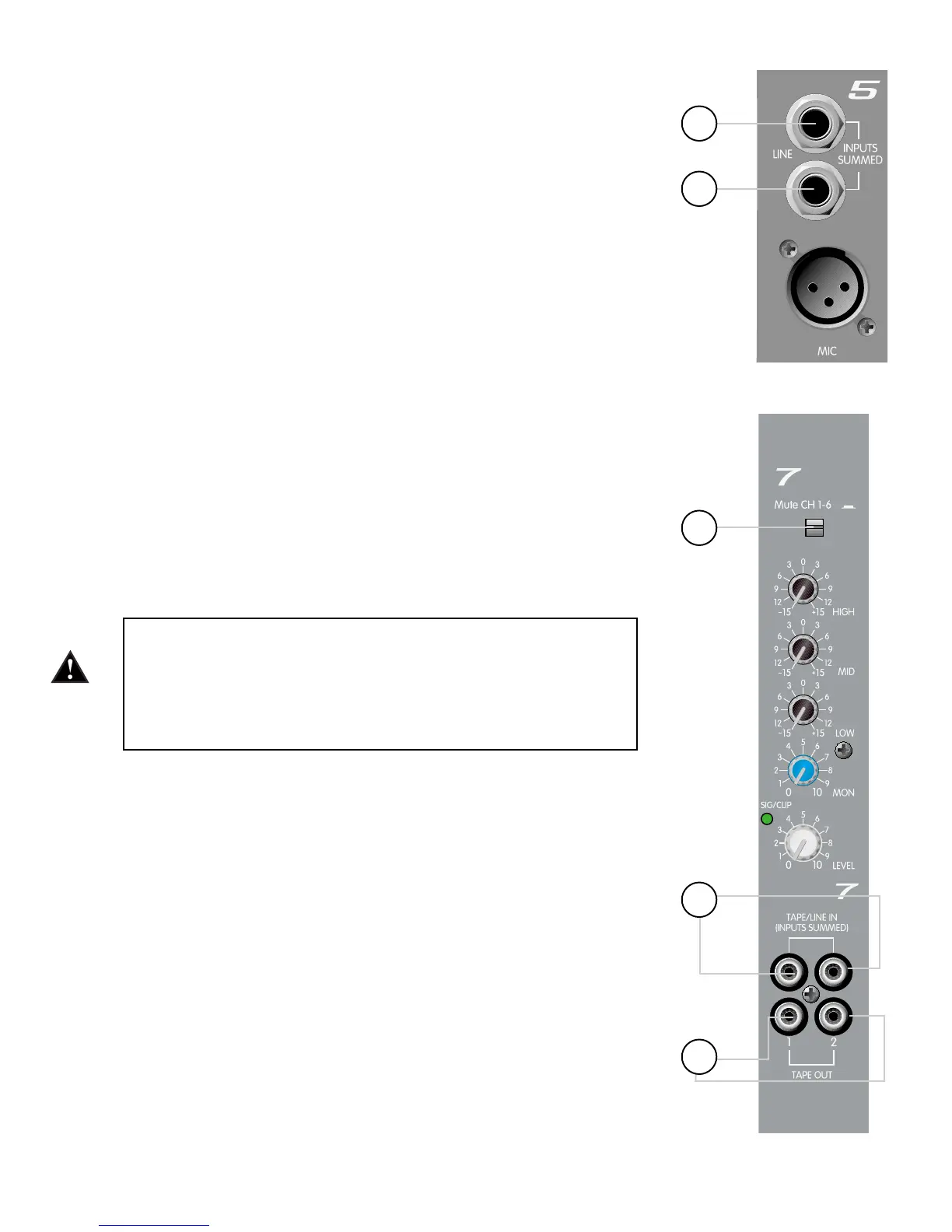 10 & 11 Entradas de Línea: Entradas de alta impedancia de 1/4" para señales de nivel de