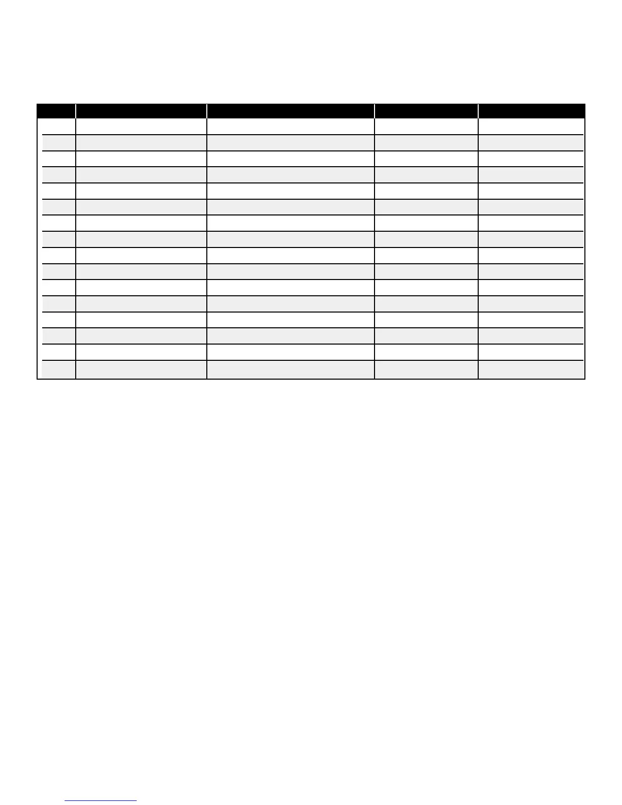 16. EFX Select: Mit diesem Drehschalter wird einer der 16 verfügbaren Effekte ausgewählt. (Siehe Tabelle unten.)