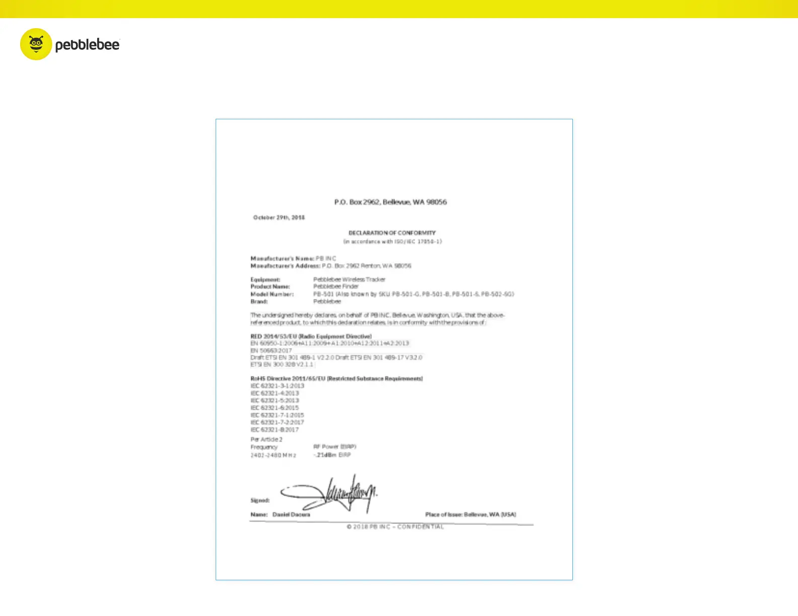 Pebblebee Finder 2 - Declaration of Conformity
