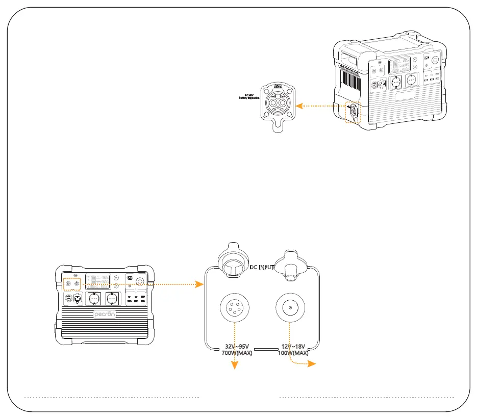 2. GX16MF-5 Charging Port: PV(operating voltage) range 32V~95V, 700W maximum; VOC(open circuit voltage) of solar