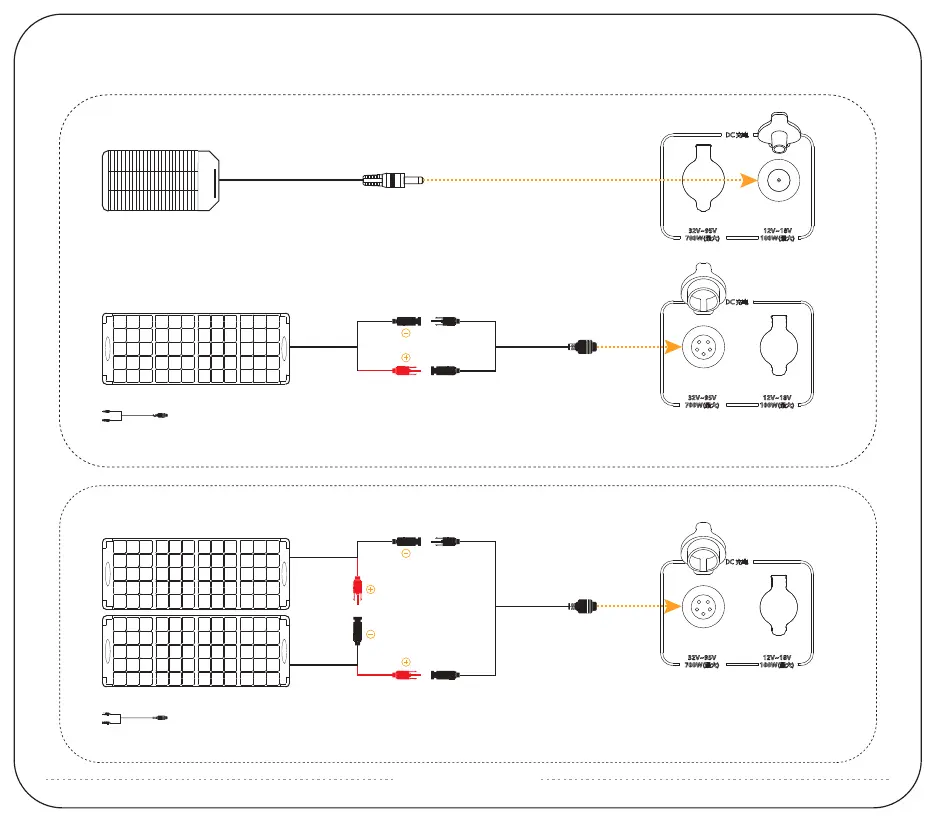 建议选用PECRON太阳能板,以获得最佳使用体验!单个太阳能板开路电压应小于48V,工作电压应大于16V。