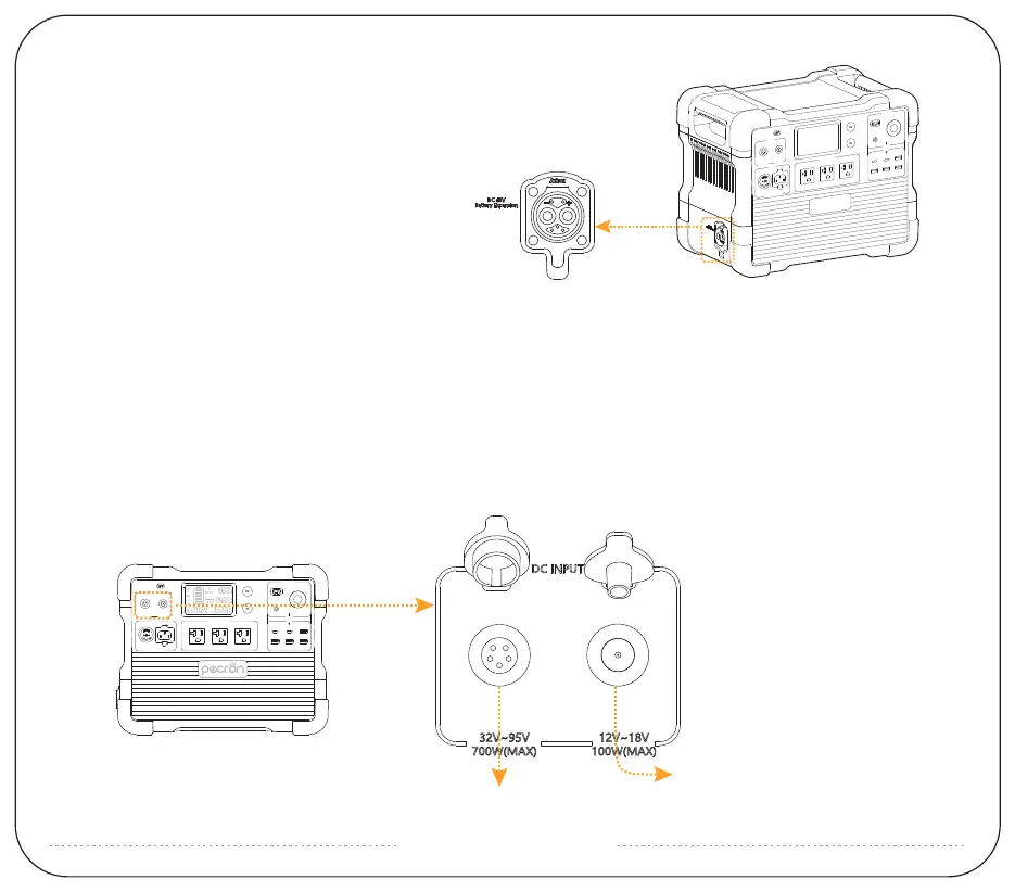 2. GX16MF-5 Charging Port: PV(operating voltage) range 32V~95V, 700W maximum; VOC(open circuit voltage) of solar