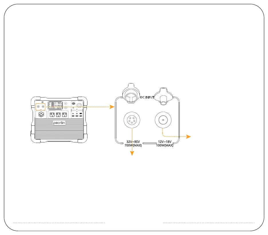 1. DC5521 Charging Port: PV/DC 12V~18V, 100W maximum; VOC(open circuit voltage) of solar panel must be less than
