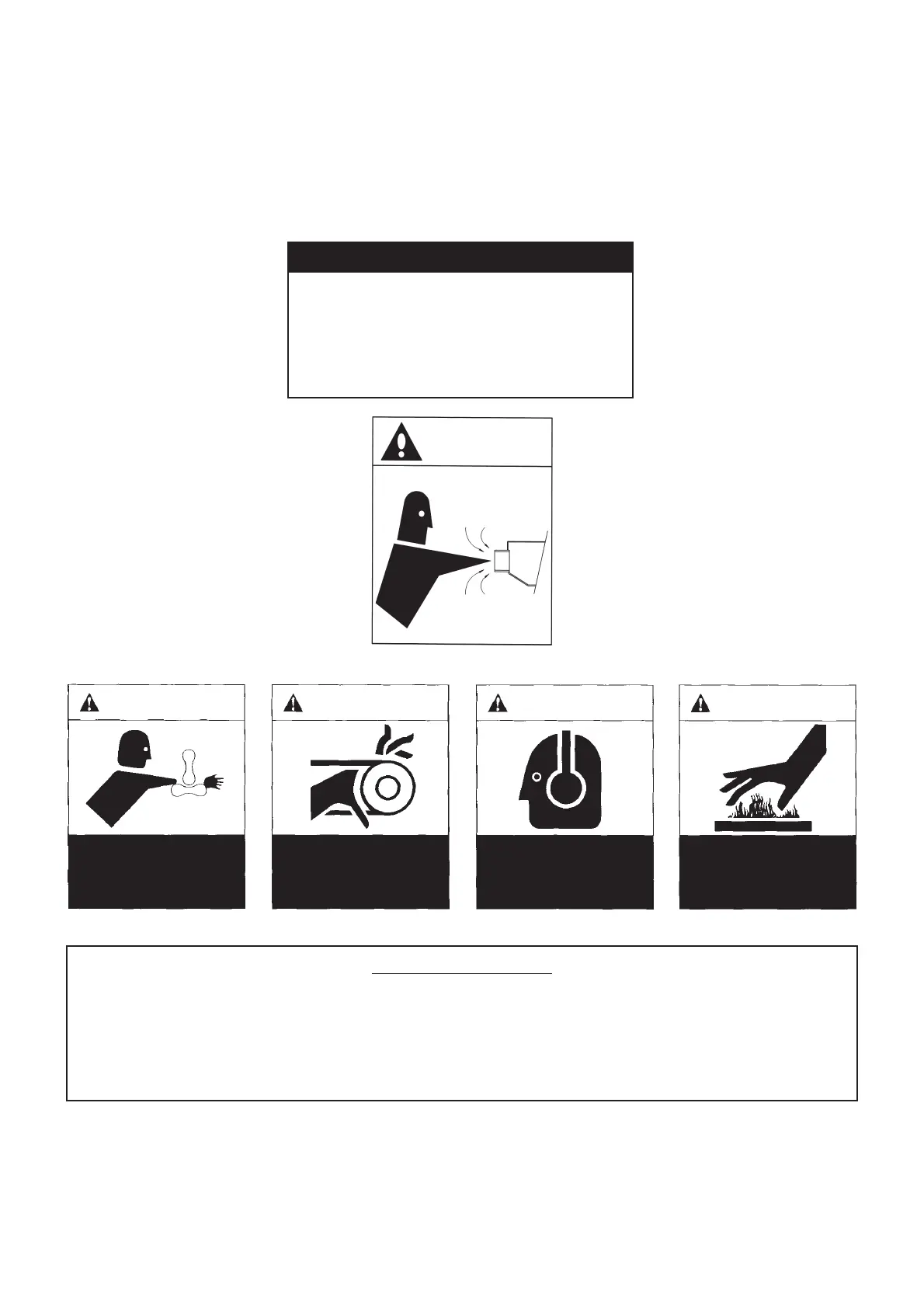 • Keep your body and clothes away from the rotating machinery and the intake and exit openings.