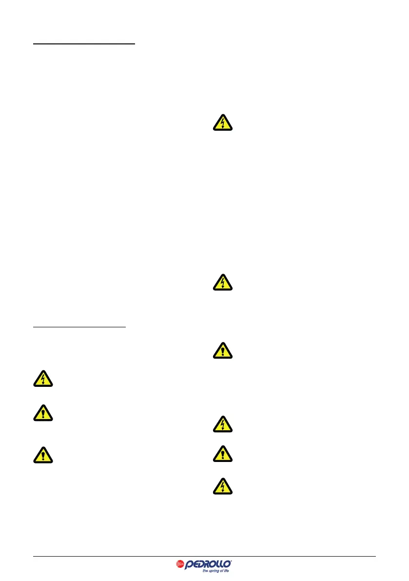 PEDROLLO DG PED 5 - Safety Regulations; General Safety Warnings; Installation and Maintenance Safety; Operational Safety