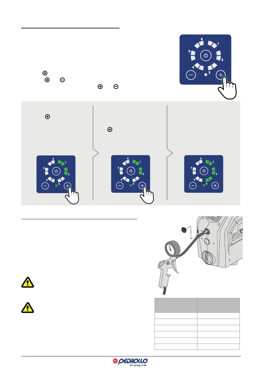 • Die Tasten oder drücken, um den BETRIEBSDRUCK zu erhöhen oder ver-