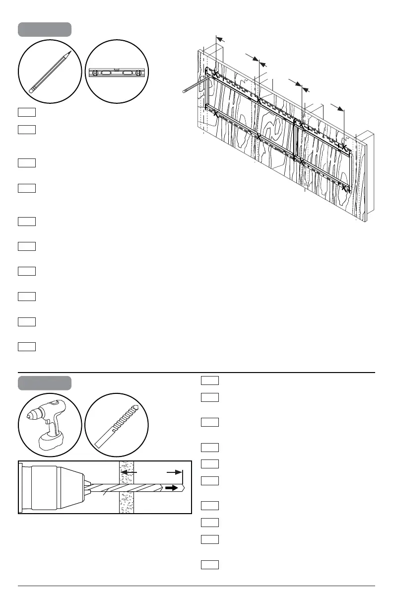 Bohren Sie Montagelöcher in die Montagefl äche;