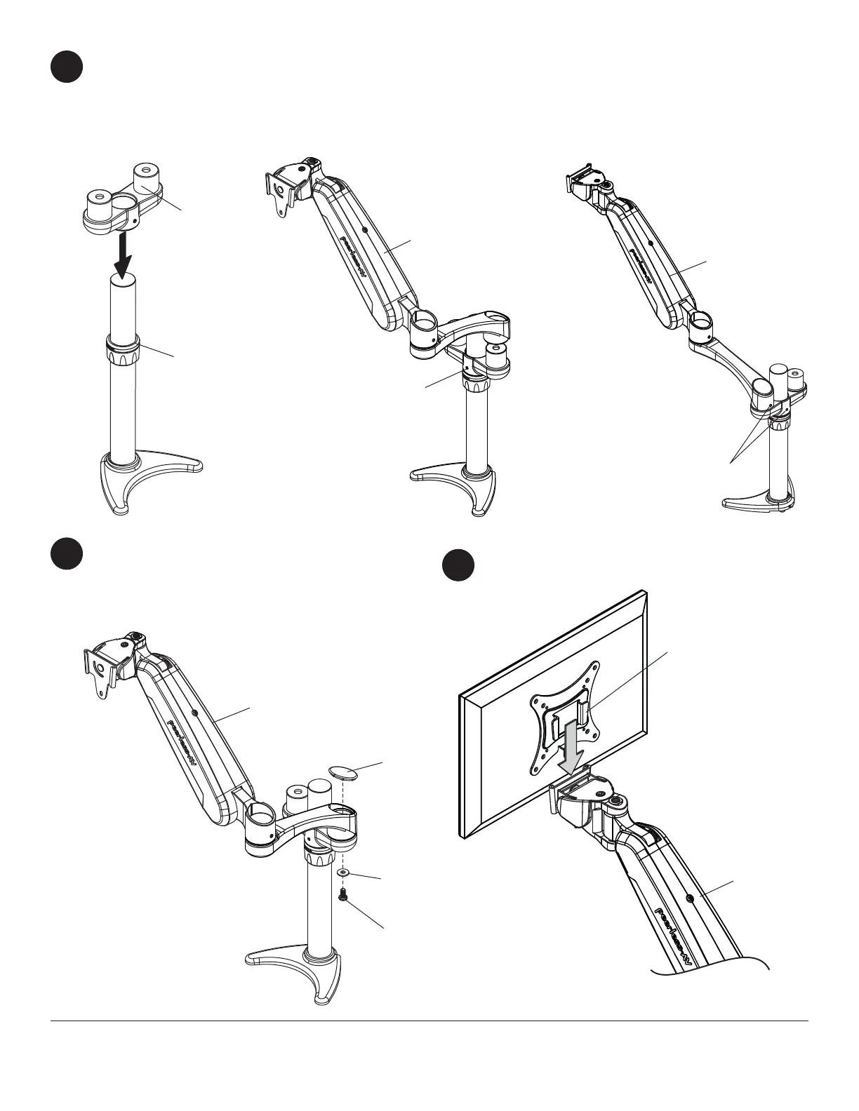 Insert dual arm support (P) onto column assembly (A) fl ush against lock collar as shown in fi gure 5.1. Loosen and